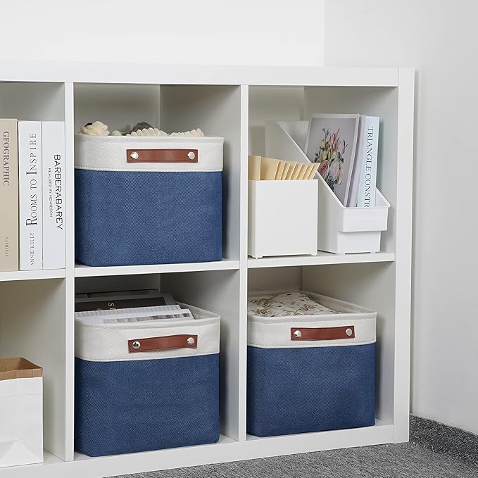 DULLEMELO Fabric Storage Bins, Foldable Storage Baskets for Organizing, Empty Gift Baskets (3-Pack Medium-15 inch X 11 inch X 9.5 inch , White&Blue)