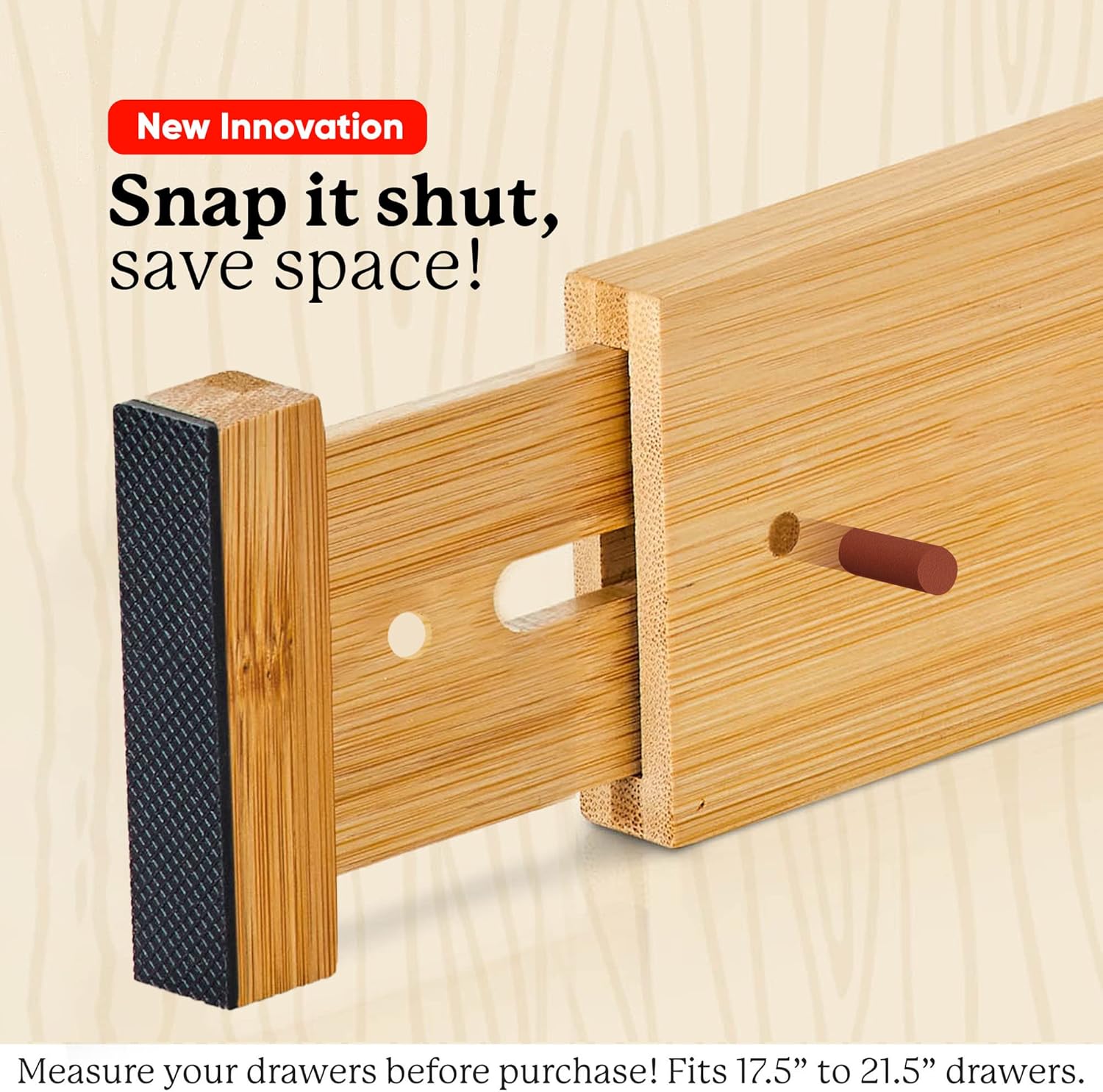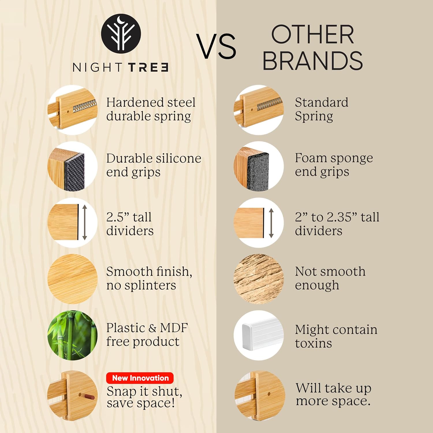 Night Tree Expandable Bamboo Drawer Dividers – Spring-Loaded Wooden Organizers for Clothes, Kitchen Utensils, Bathroom, and Dresser Drawers (18" to 20")