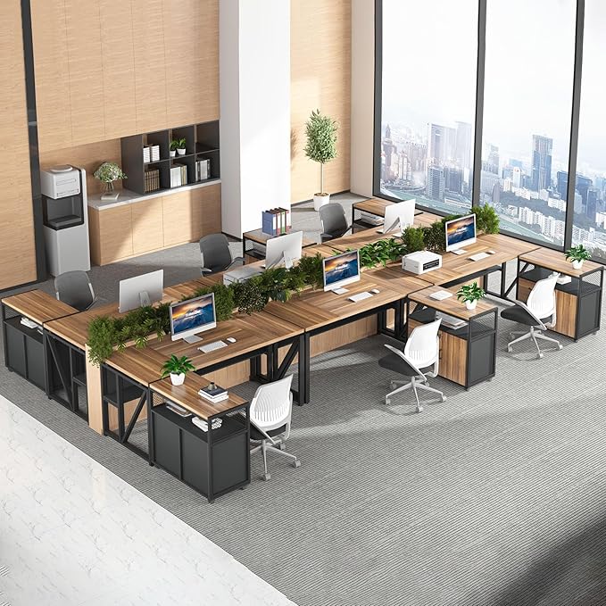 • 【Sturdy & Beautiful finish】:The office desk constructed of heavy-duty metal frame and thickened compressed board (1.2 inch) ensure durability and stability. The furniture set is a combination of vintage colors and black match any decor style.