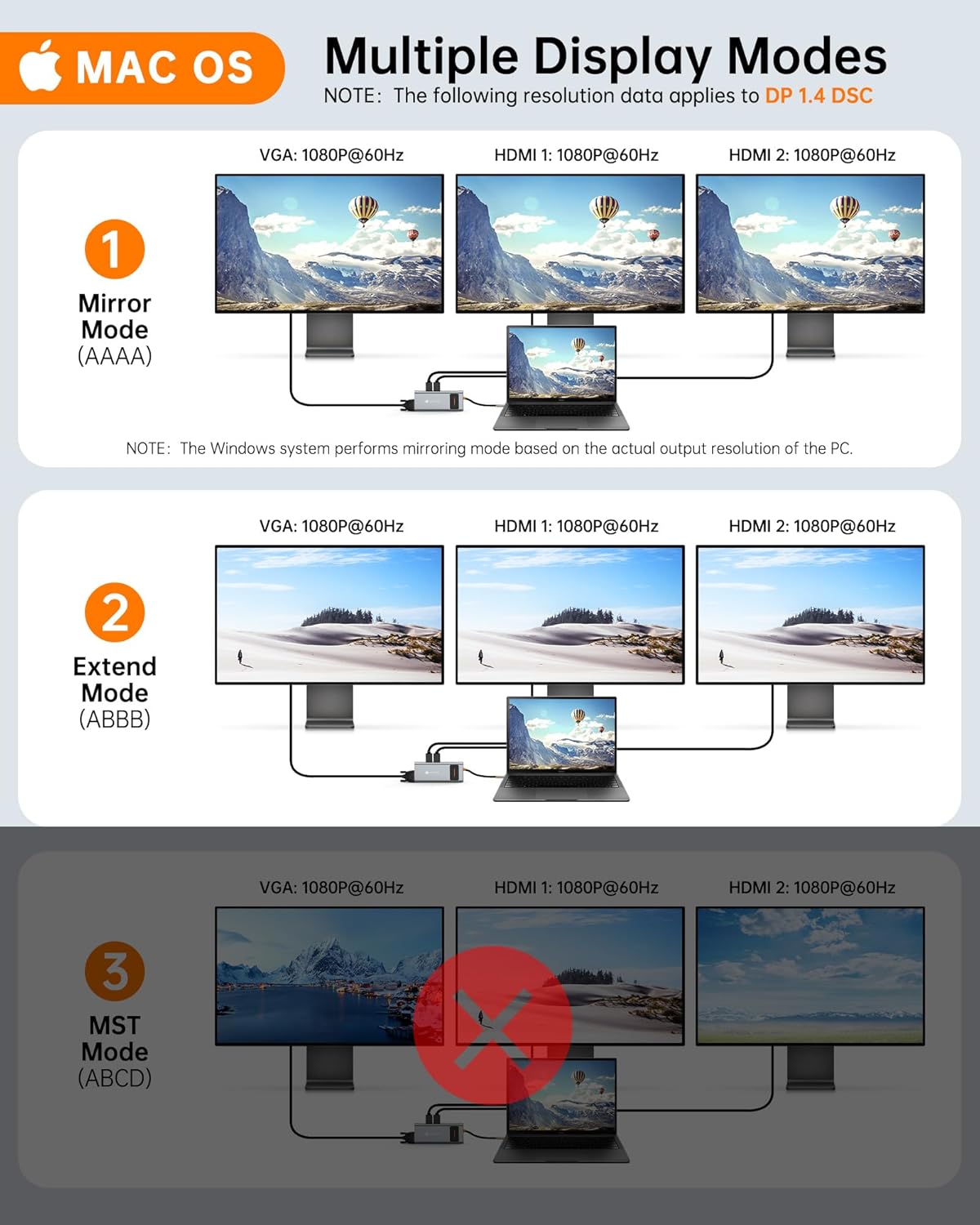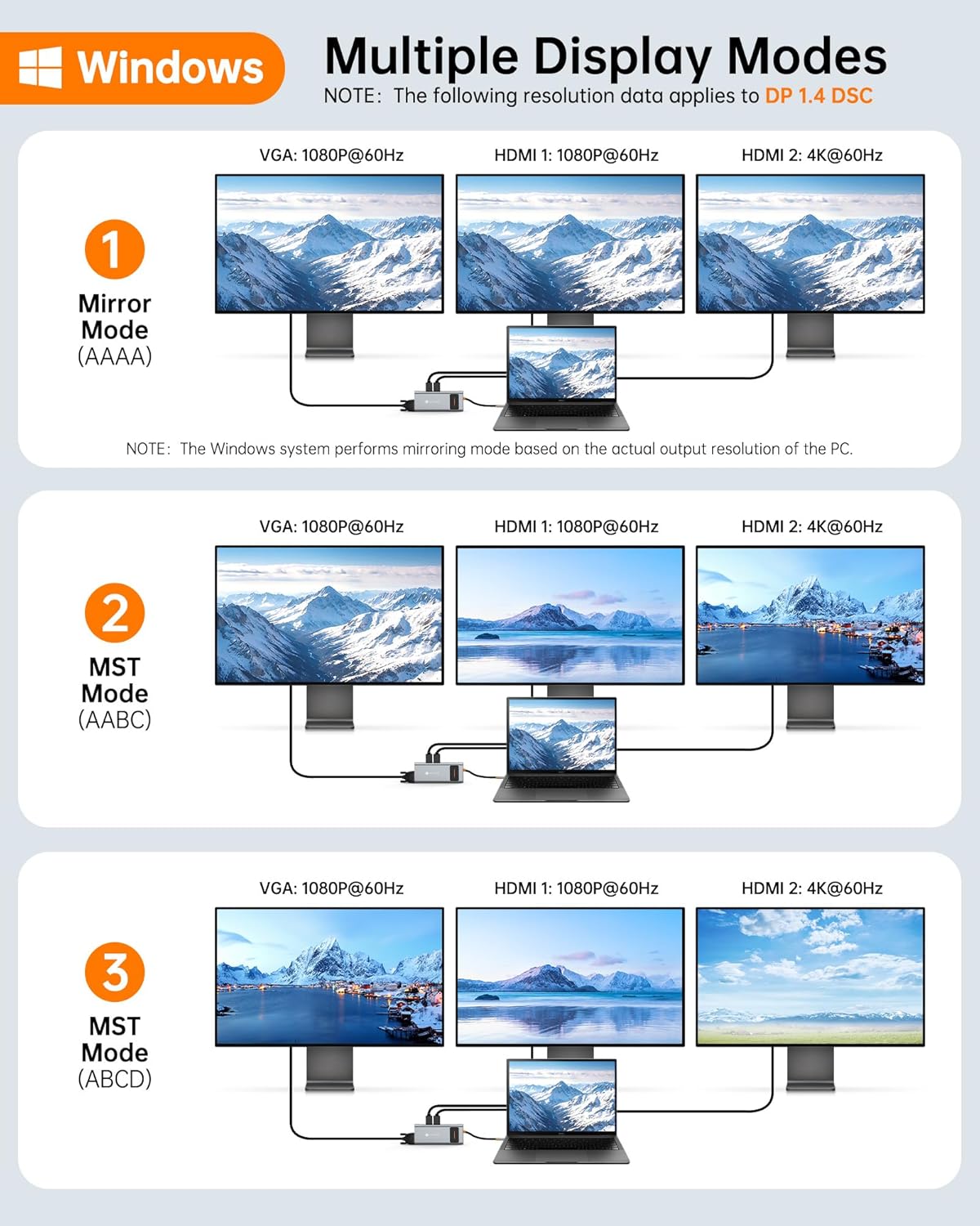• Docking Station Dual Monitor: Dell docking station will help you easily achieve dual-monitor and triple-monitor display, making your work/life more efficient;( Triple Display 2 HDMI 4KVGA 1080P) ★Please Note Before Purchase: Only the built-in usb c port of your laptop is the fully functional port, you can use the dual/triple monitor function if you are not sure, please send the laptop model and we will help you to check if this docking station is compatible for your device