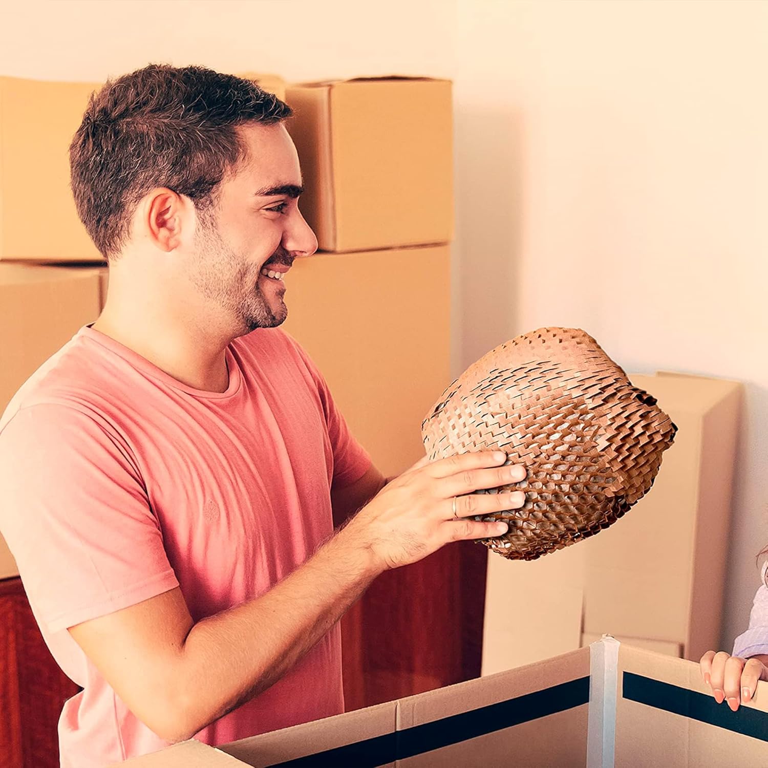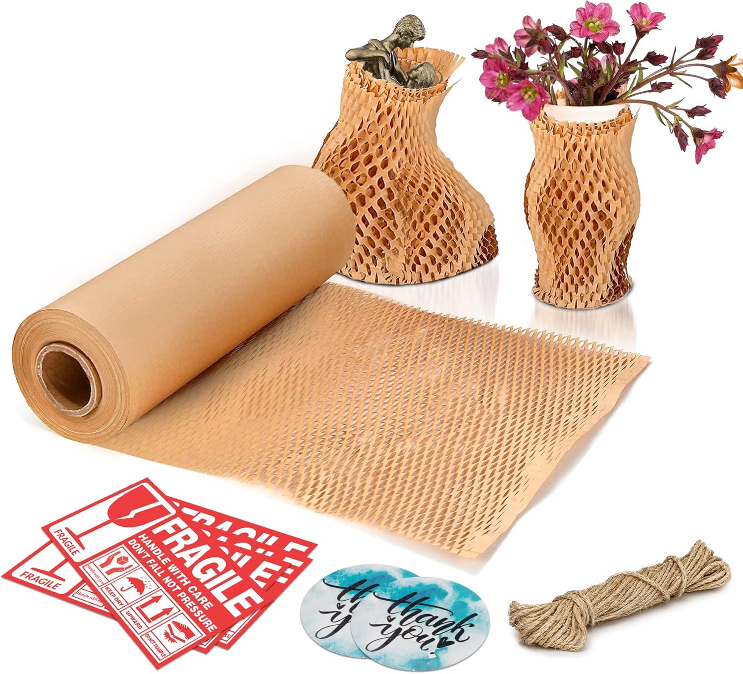 • No Fasteners Construction. Forget the hassle of glue; honeycomb paper wrap for packing attaches to itself. Flexible yet strong, the packing & moving supplies packing paper to wrap glass makes packing and unpacking a breeze.