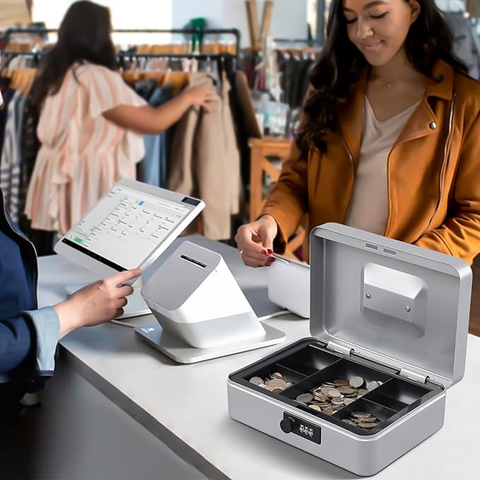 • DURABLE AND UNBREAKABLE: The cash boxes is unbreakable in our daily life due to strong metal material. Besides, the inner removable money tray is so sturdy built that you have no reason to worry about the security of your items.