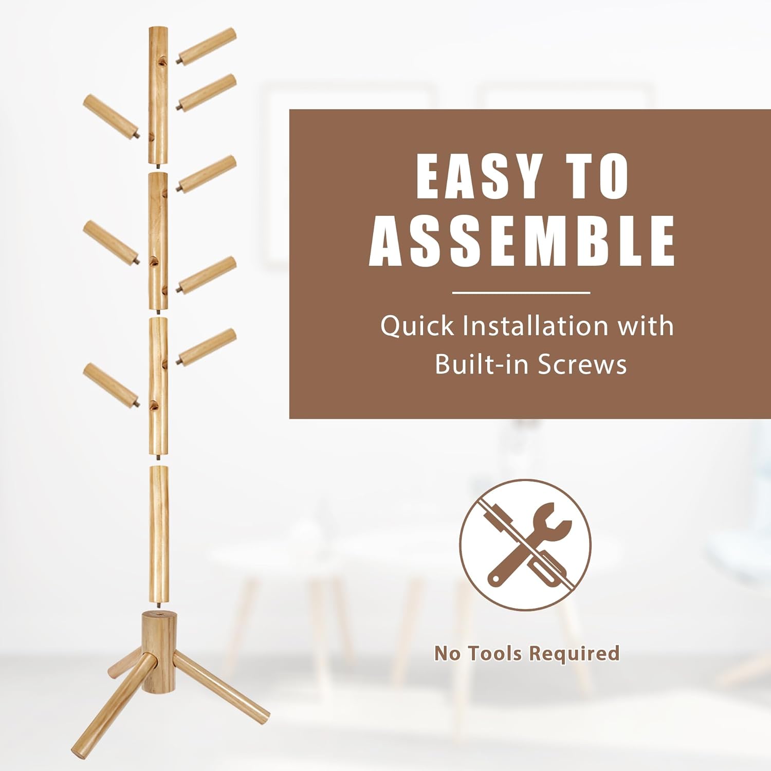 • EASY TO ASSEMBLE: No Tools Required. The coat rack is equipped with metal screw holes. You can assemble it with our assembly instruction manual in just a few minute