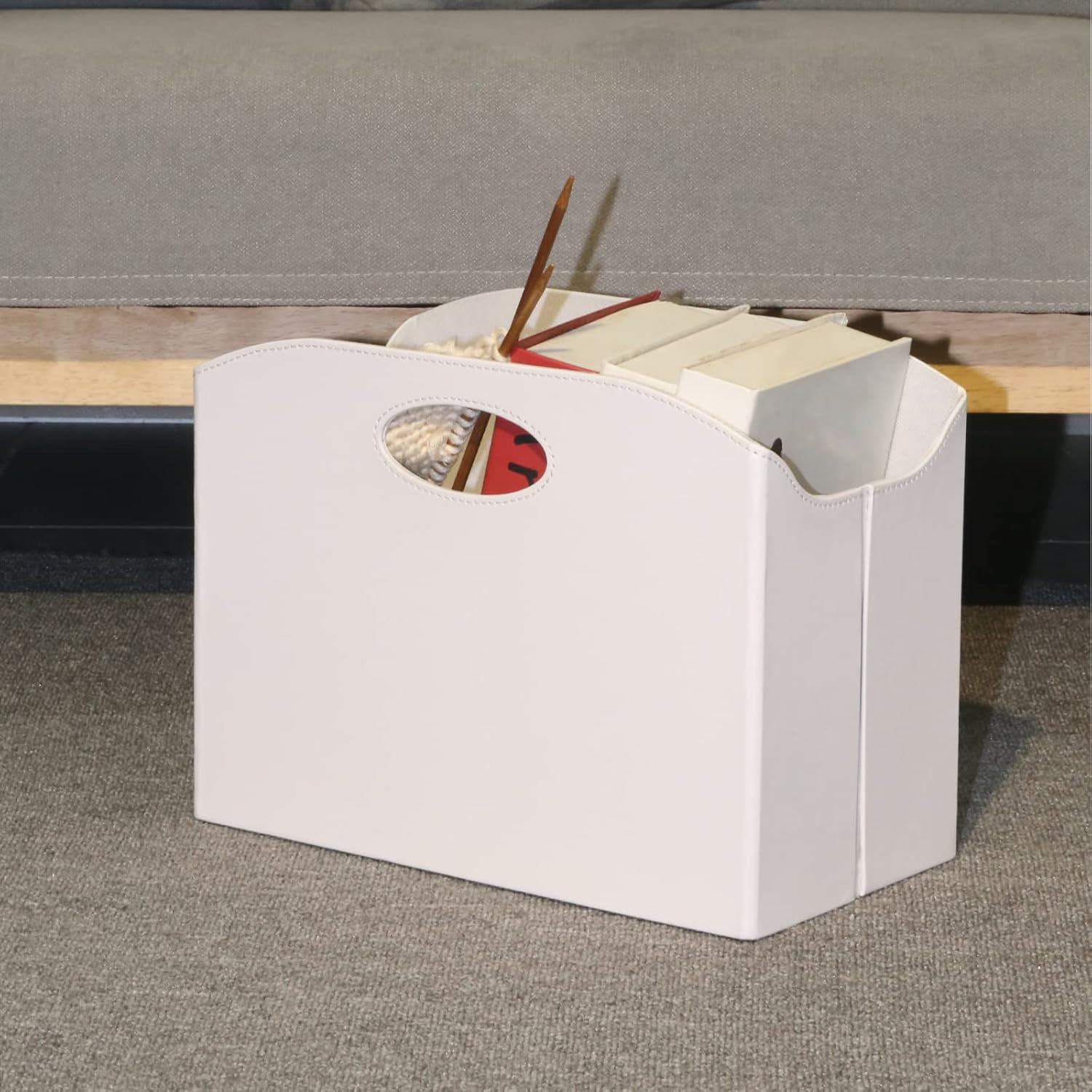 • Quality materials:This PU Leather Magazine Rack has both a stylish look and high quality, the PU Leather Magazine Basket can also be used to store documents, letters, papers and other items for organization and storage.