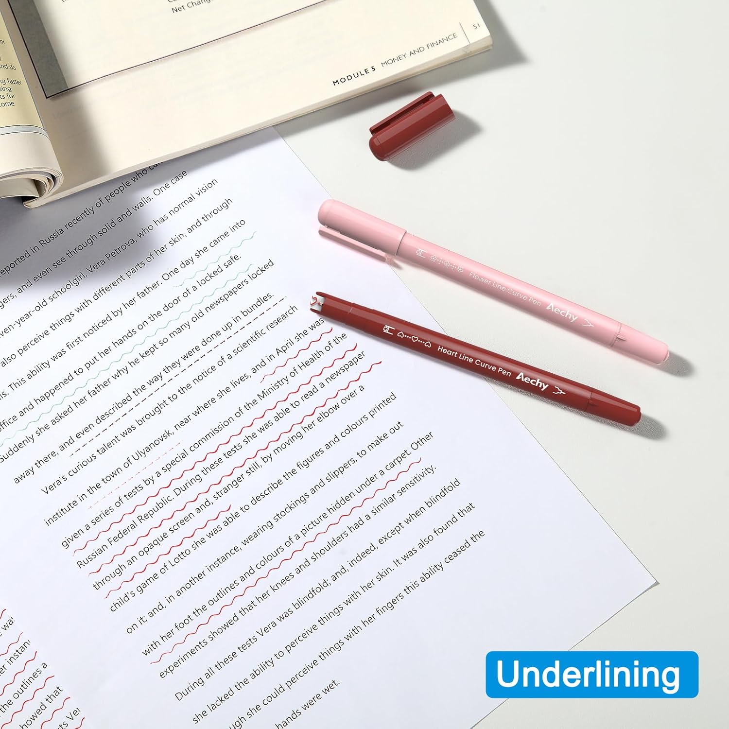 AECHY Colored Curve Highlighter Pens Set - 8 Different Shapes & 8 Colors Fine Tips for Writing, Journaling, Note Taking, Drawing, Scrapbook Art, School Supplies (Classic)