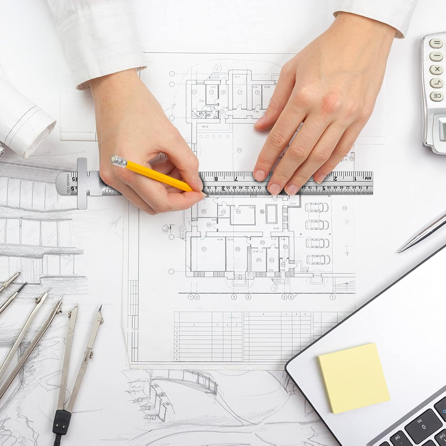 • Steel Ruler: the back of 6 inch ruler is engraved with a conversion table from inches to mm, which facilitates the conversion of various measurement data, offering you considerable convenience