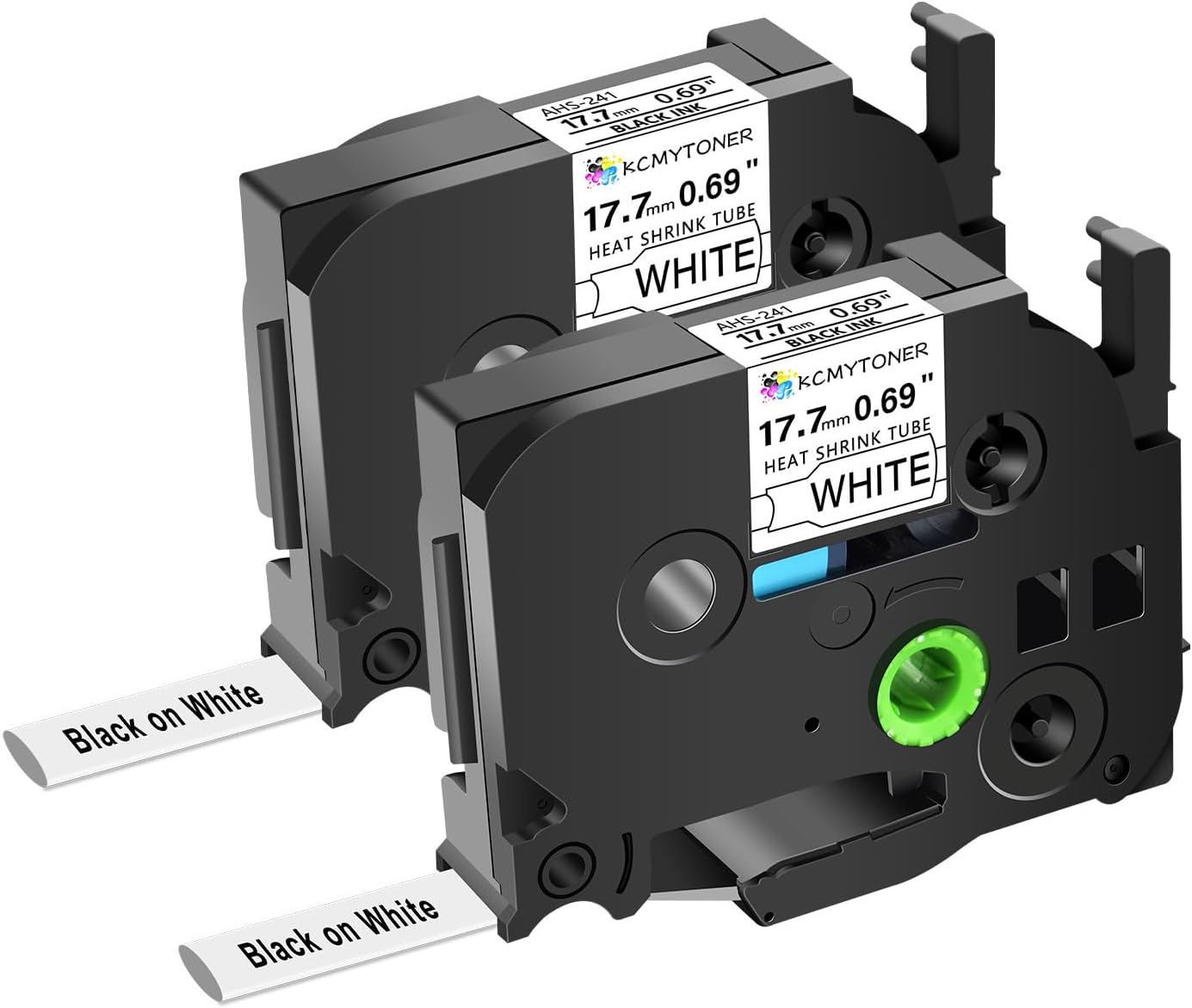 • Package Included: 2 pack KCMYTONER compatible for ptouch HSe-241 HS-241 HSe241 HS241 heat shrink tube label tapes; color: black text on white tape; size: 3/4 inch (17.7mm, flattened width) x 4.92 feet (1.5m).The size indication for this heat-shrink tube label is the width of the flattened tube as a label in a label printer. Do be aware that the size given relates to the label making machine, not the wire. HSe-241 17.7mm tube suits cables ranging from Φ5.4mm to Φ10.6mm in diameter.