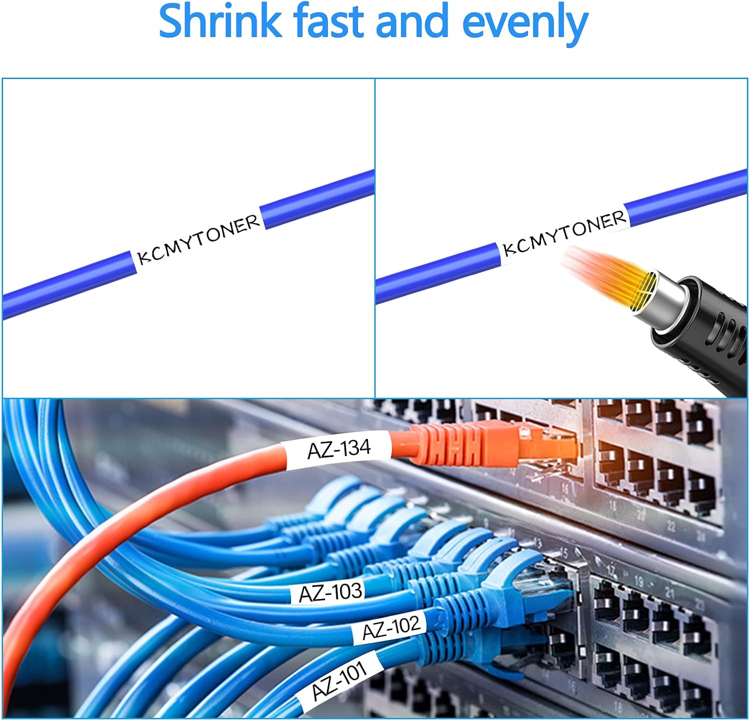 • Labeling cables more efficiently and easily: Tapes featuring shrink ratio of 2:1 which ensures a secure fit on wires and cables. You just need to slide the tube onto the wire/cable and shrink snugly to the cable with a heat gun, labels will shrink up perfectly to the wires and never curl or fall off