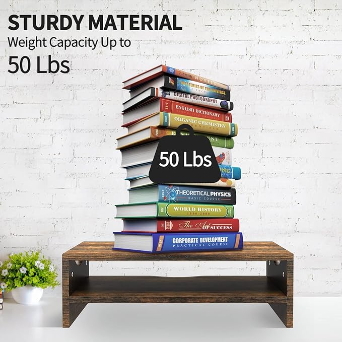 • Save Your Space: Get rid of the messy desks! 2-Tier monitor risers provide more storage space to keep your workstation organized and tidy. It can store many office supplies such as books, notebooks, earphones, power banks, paper, etc.