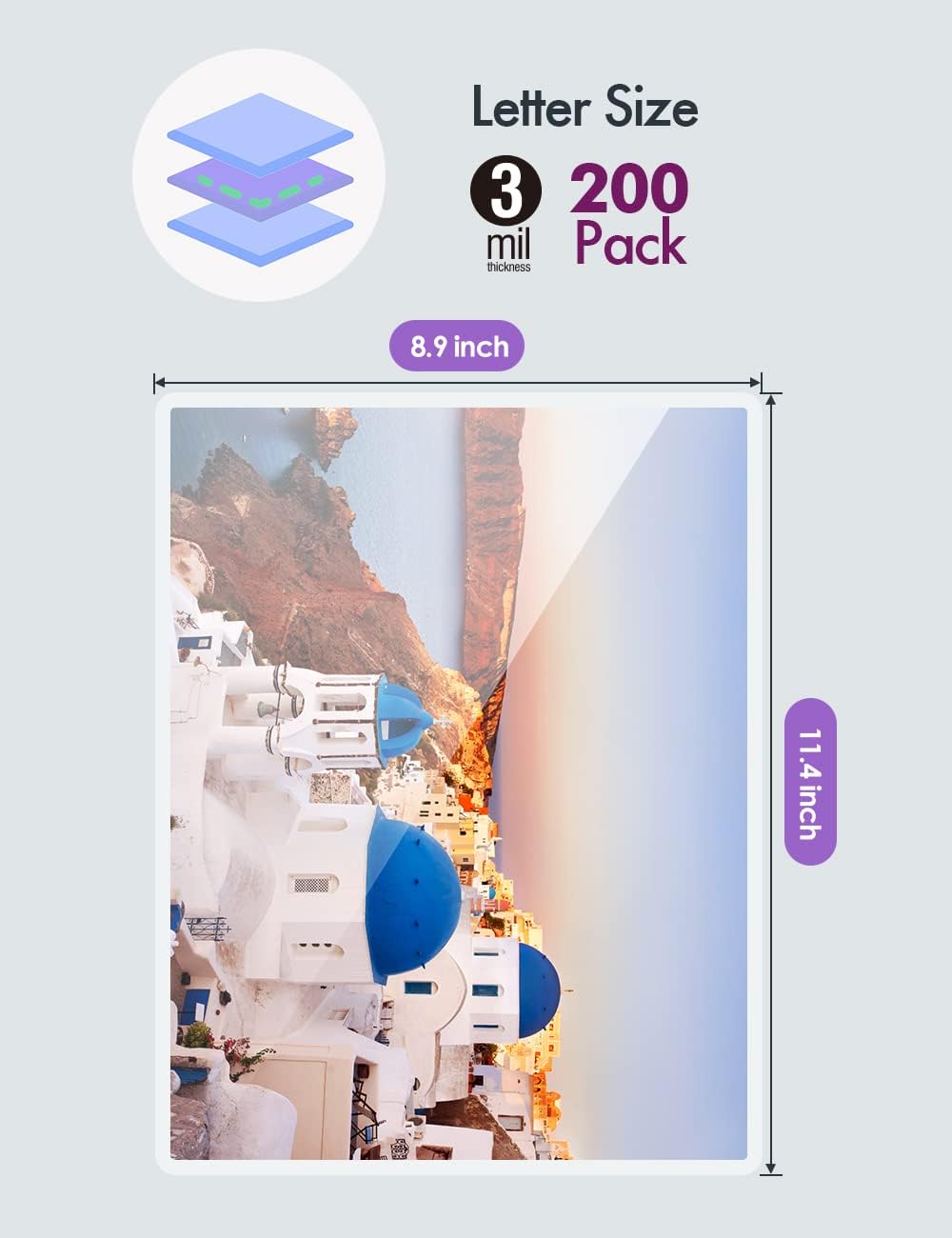 • 【Specifications】Fits Letter size documents, 8.5 x 11 in (229mm x 292mm), pack of 200 Laminator sheets, 3Mil thickness;