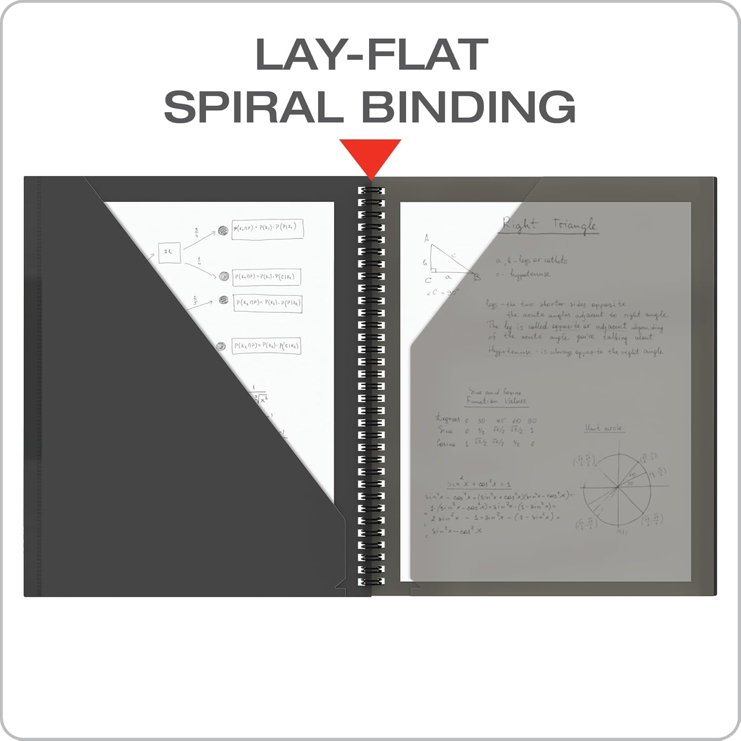 • This Oxford 10 pocket plastic folder has 8 pockets and 2 interior cover pockets for extra organization, easy lay-flat spiral binding and anti-tear edges to last the school year; 9" x 11", black