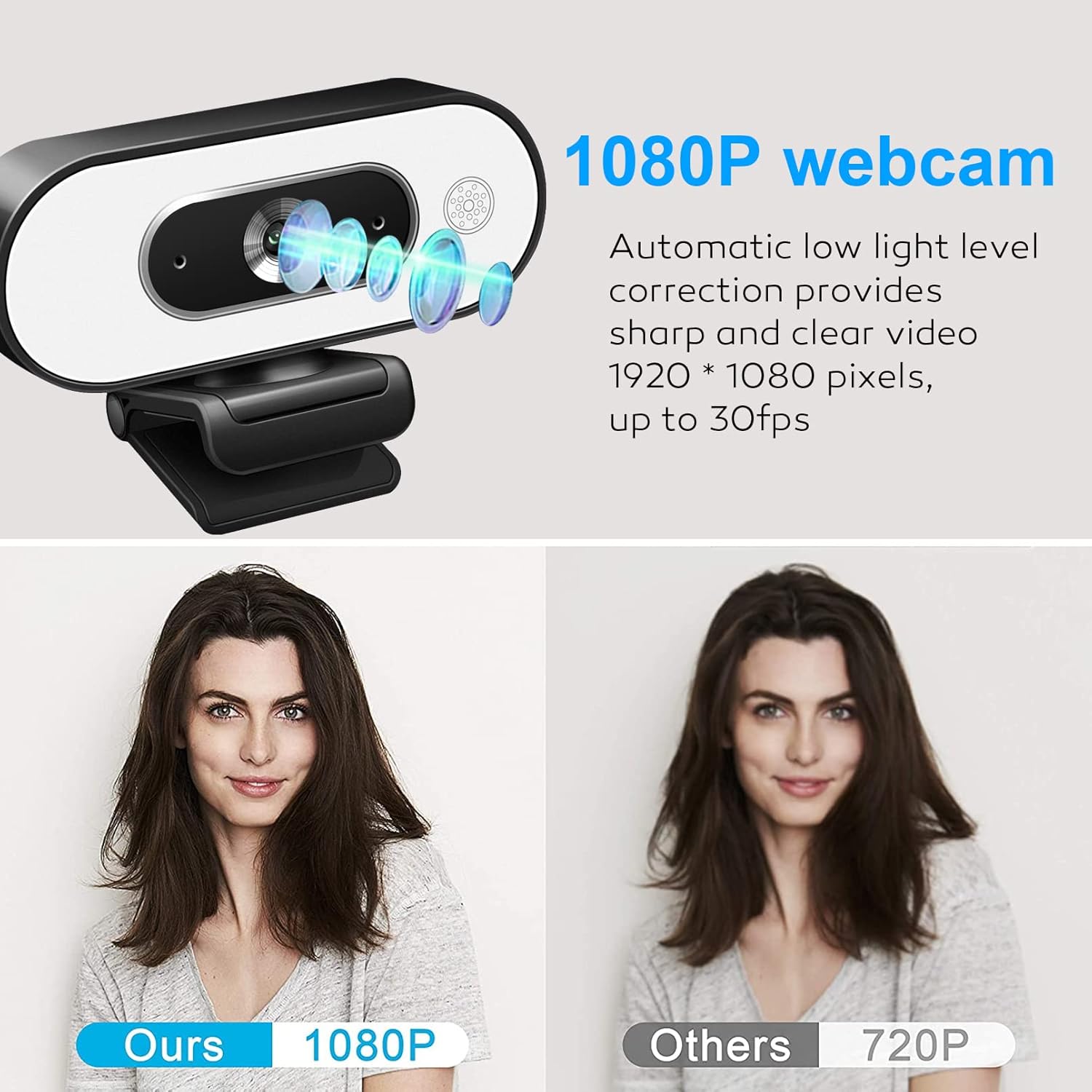 • [Three-Level Touch Adjustable Webcam with Ring Light] The built-in ring light in the webcam with ring light provides three different levels of lighting (high light-medium light-low light); the stream camera also has sensitive touch control. The laptop camera uses automatic light correction technology. Compared with many other laptop camera with built-in lights, webcam with ring light have softer light tones and can produce bright and clear images even in dim environments.