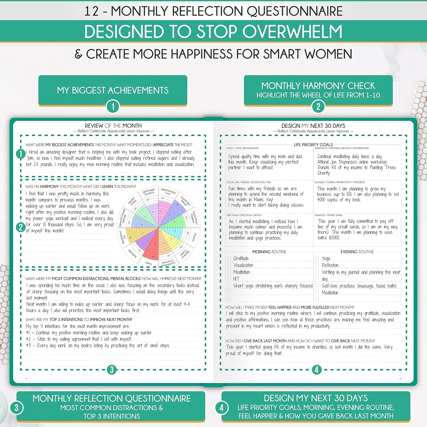 • UNDATED PLANNER - Luxurious and high-quality, suited for women, and ideal for entrepreneurs, professionals, college students, and anybody with a burning desire to achieve their objectives. No-questions-asked money-back guarantee