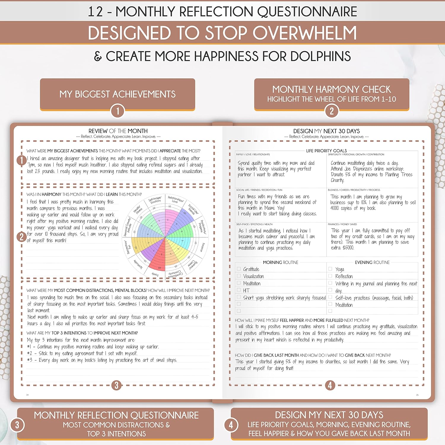 • SELF CARE PLANNER -This premium undated monthly planner teaches you how to apply the law of attraction vibration guide to become the best possible version of yourself on a mental, physical, and interpersonal level, increasing productivity and happiness