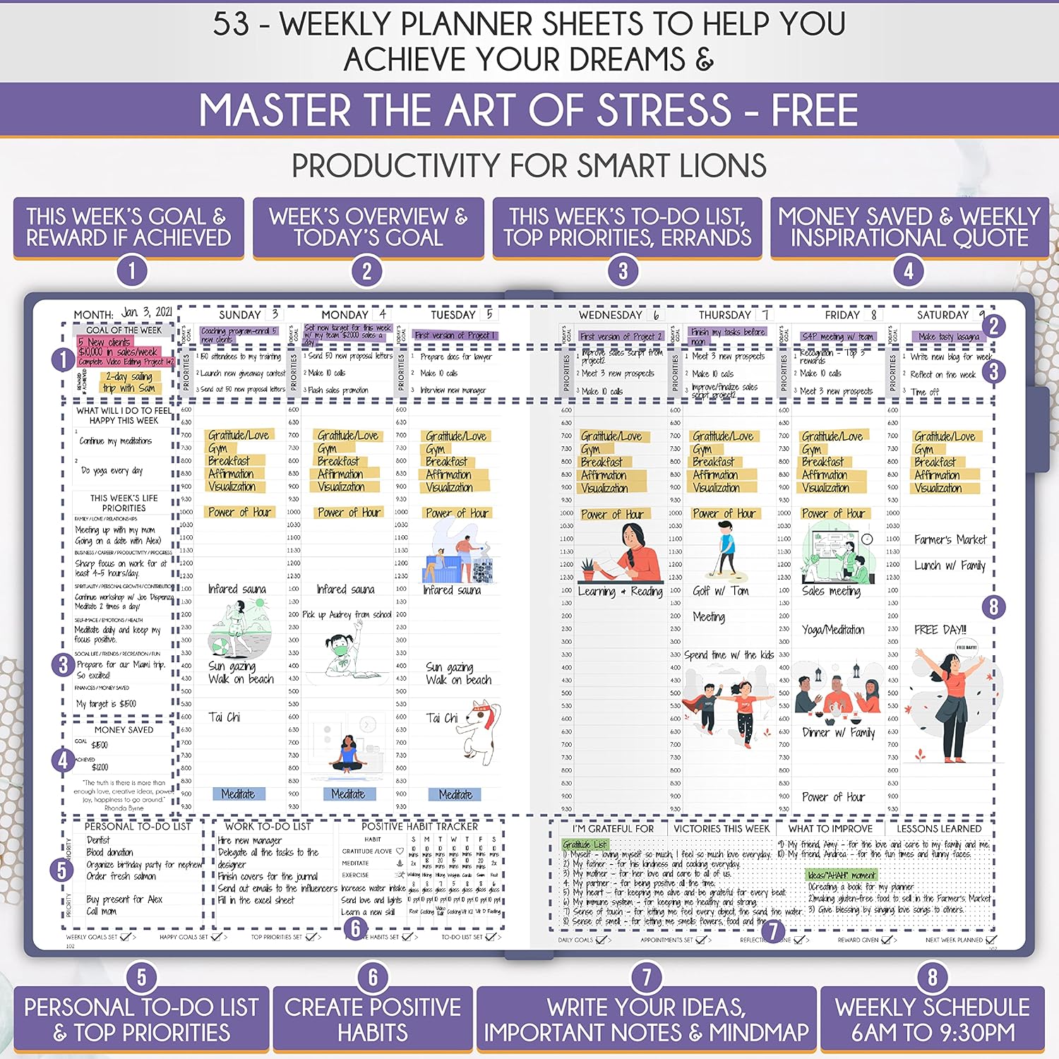 • GOAL SETTING PLANNER - Acquire the skills to establish ambitious goals, foster happiness, and effectively allocate your time, employing the strategies utilized by millionaires to set and attain their objectives. This planner for the year 2024 serves as an excellent choice for gifts on occasions like birthdays, Mother's Day, anniversaries, and Christmas.