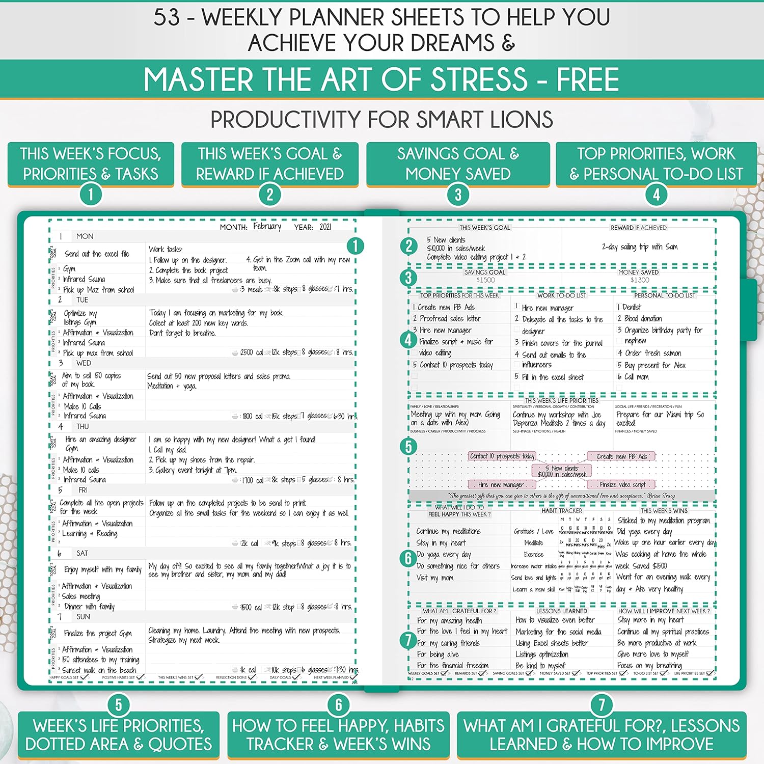 • GOAL SETTING PLANNER - Acquire the skills to establish ambitious goals, foster happiness, and effectively allocate your time, employing the strategies utilized by millionaires to set and attain their objectives. This planner for the year 2025 serves as an excellent choice for gifts on occasions like birthdays, Mother's Day, anniversaries, and Christmas.