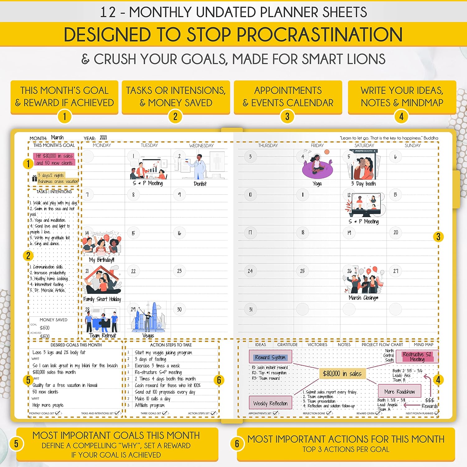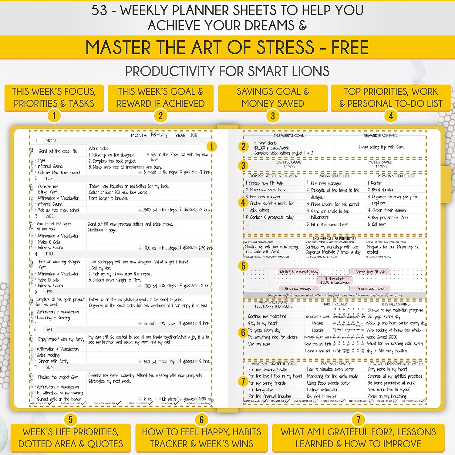 • GOAL SETTING PLANNER - Acquire the skills to establish ambitious goals, foster happiness, and effectively allocate your time, employing the strategies utilized by millionaires to set and attain their objectives. This planner for the year 2025 serves as an excellent choice for gifts on occasions like birthdays, Mother's Day, anniversaries, and Christmas.