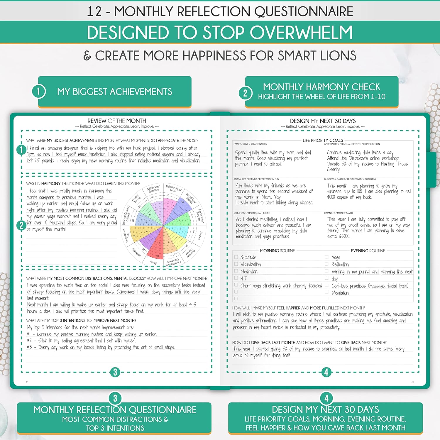 • SELF CARE PLANNER - This premium planner is undated and combines daily, weekly, and monthly planning features along with productivity, goal setting, business organization, to-do lists, notebook functionality, and gratitude journaling all in one. It includes goal-setting guidance that teaches you how to apply the law of attraction and vibration principles to become the best possible version of yourself on a mental, physical, and interpersonal level, thereby increasing productivity and happiness.