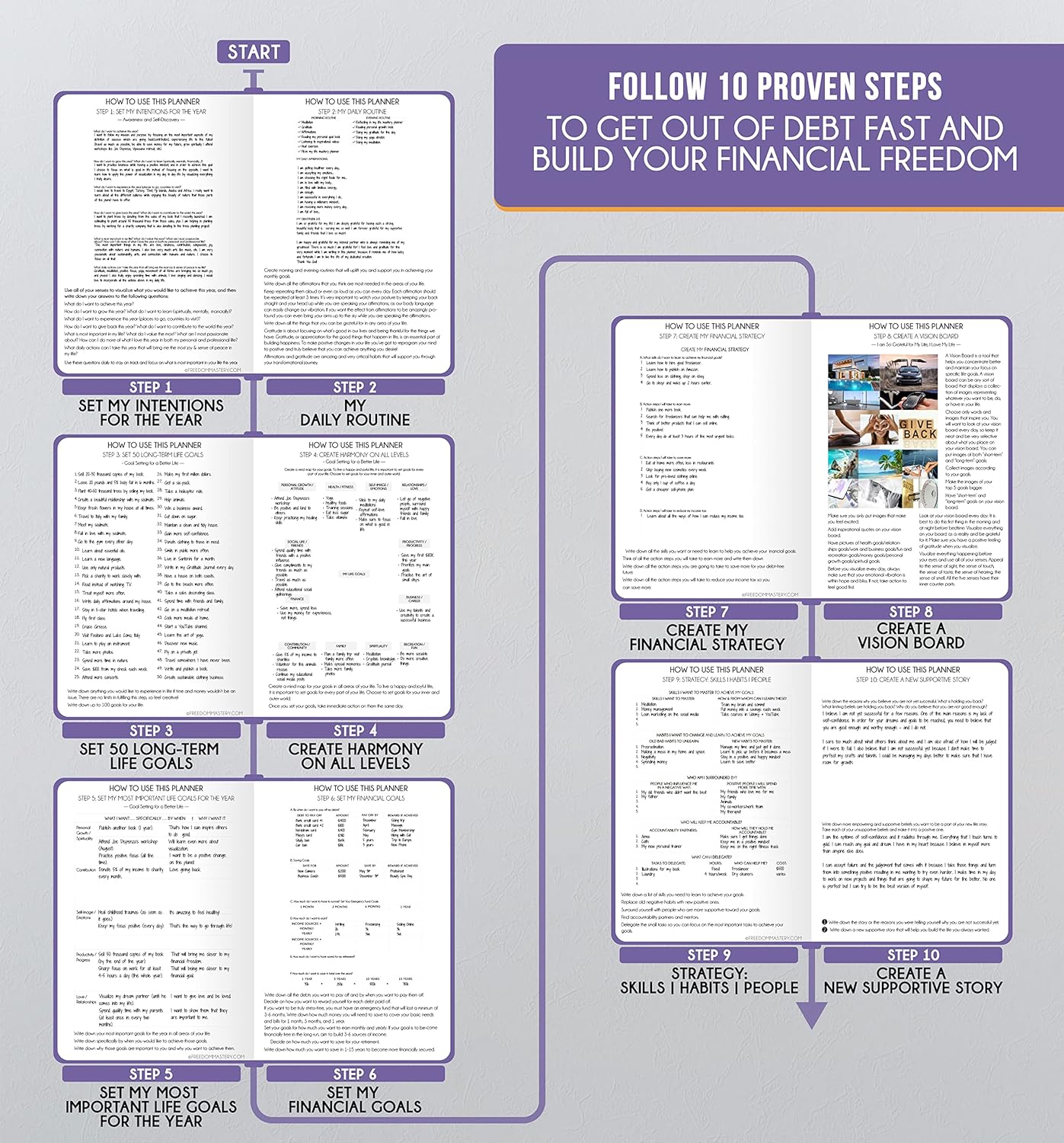 • GOAL SETTING PLANNER - Learn how to set big goals, be happy, and efficiently manage your time by adopting the same tactics used by millionaires to set and achieve them