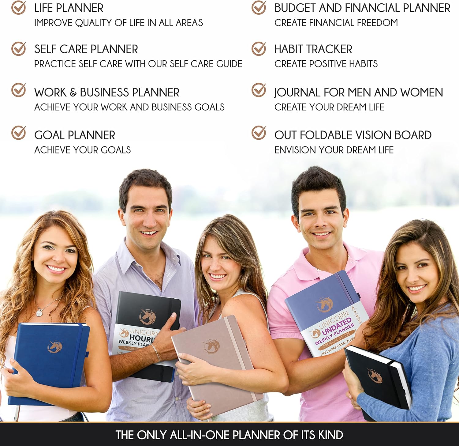 Hourly Planner - Undated Daily, Weekly & Monthly Planner with Budget Section | A 12 Month Journey to Increase Productivity & Happiness | Life Organizer & Gratitude Journal - Vertical Format