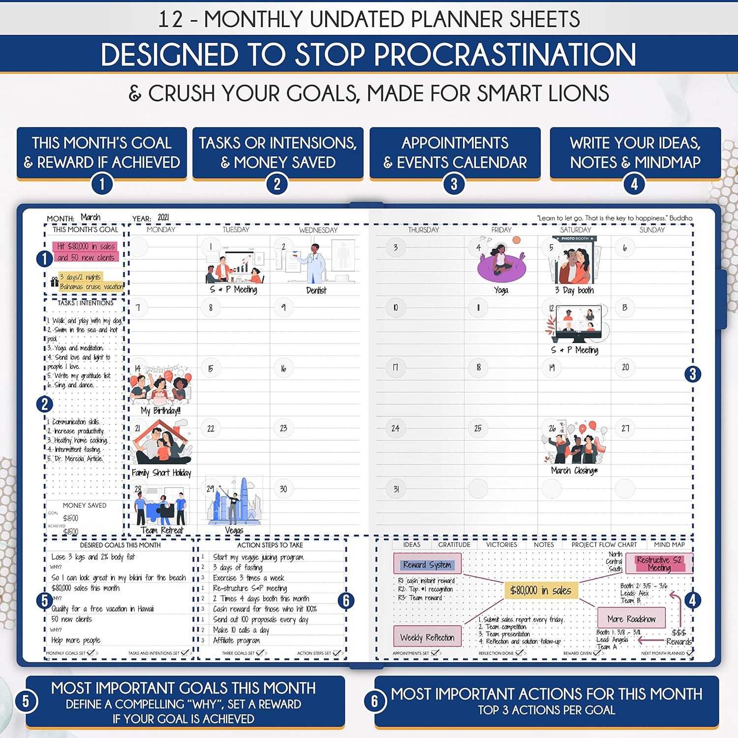 • Mindset & Gratitude Practice - Break free from overwhelm and build powerful routines with this practical habit journal, integrated into your life planner undated for men. Track progress toward your goals, growth and financial. Excellent choice for a focused daily planner for men or comprehensive men journal.