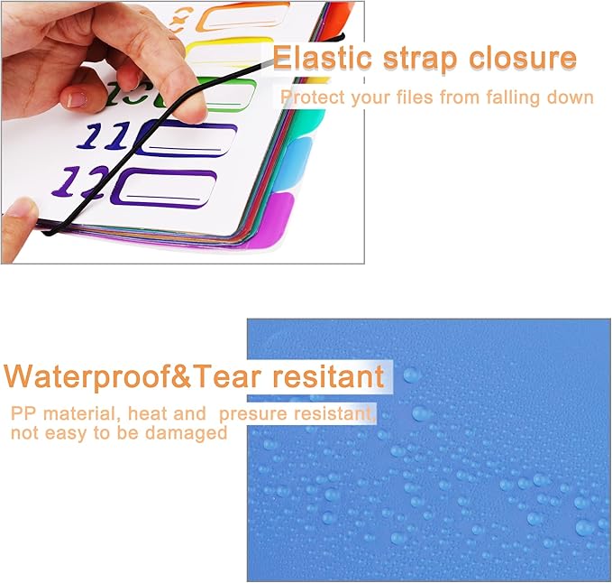 • ★Double Protection: The upper and lower parts of the file folder are secured by two elastic straps that prevent paper from falling out.