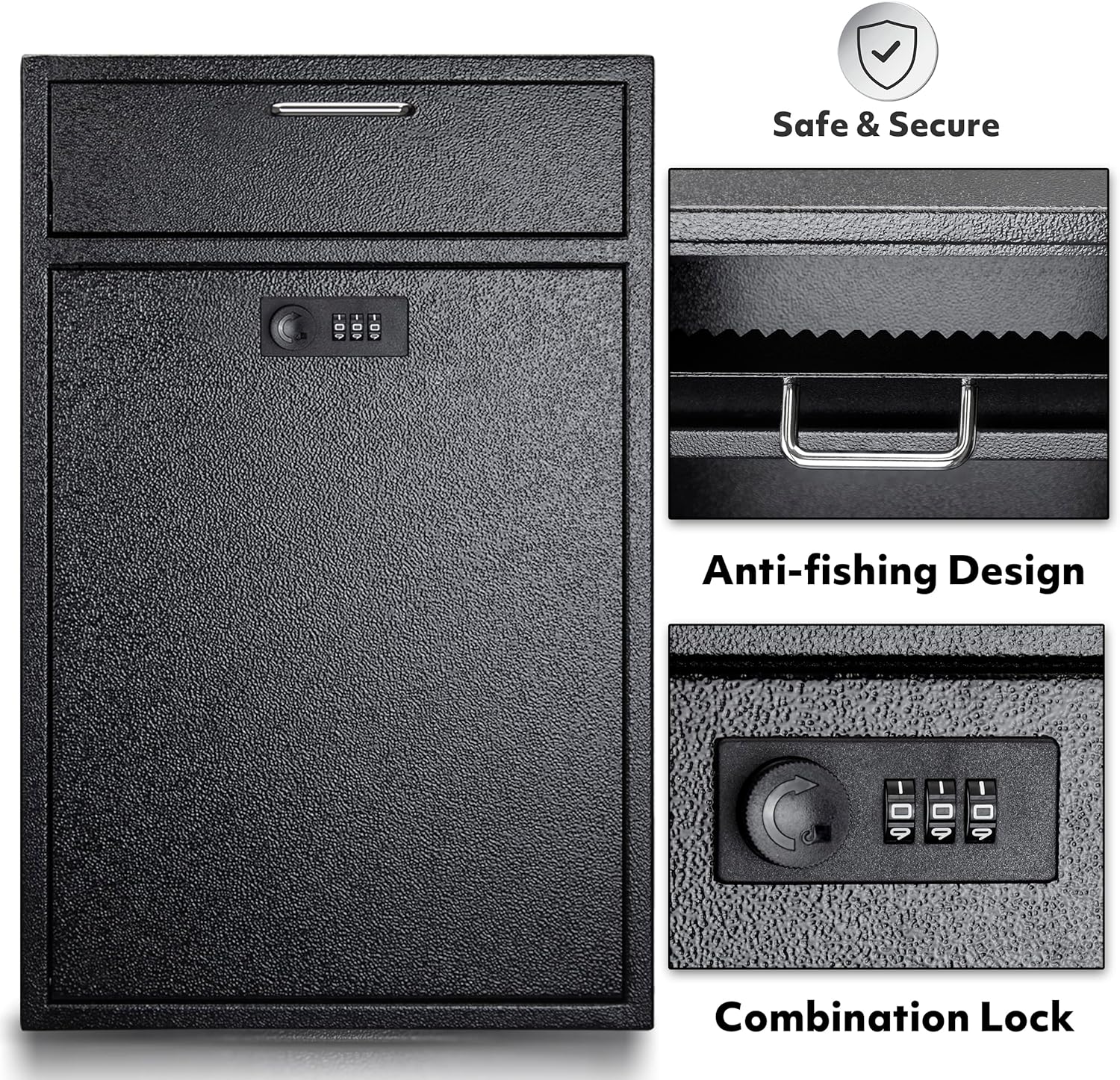 • MODERN MAILBOX & EASY TO INSTALL: Our combination lock boxes usually mounted under an awning or overhang, or as an indoor safe dropbox. This black modern mail box is suitable for walls of all styles and colors. This drop off box featuring pre-drilled holes and included hardware for quick and easy installation.