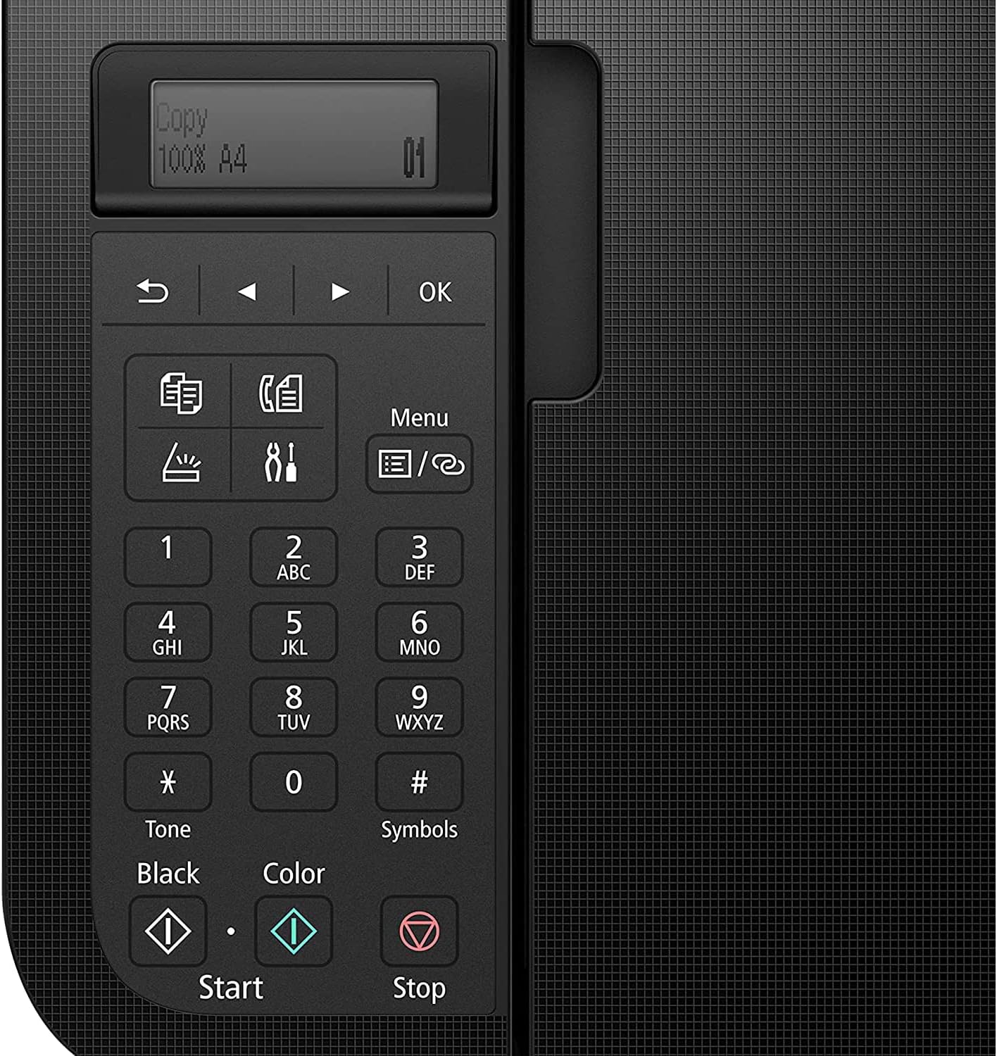• A HYBRID INK SYSTEM produces both sharp black text and colorful prints | EASY CARTRIDGE INSTALLATION & replacement | Easy to load FRONT PAPER TRAY - 100 sheet plain paper capacity | AUTO DOCUMENT FEEDER, efficiently scans multi-page documents up to legal size