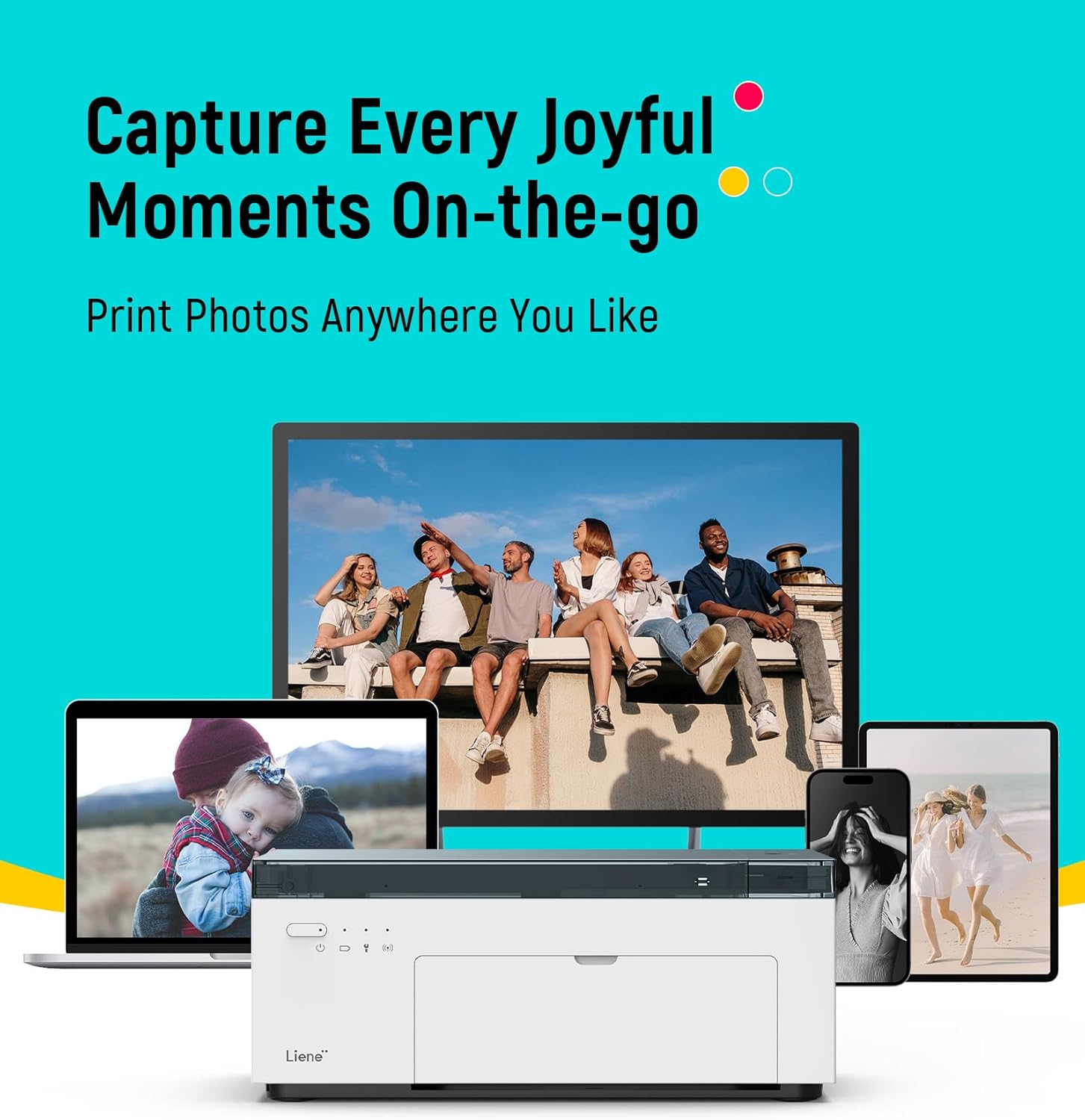 • Rechargeable Built-in Battery Edition - Looking for a travel-friendly photo printer 4x6? This Liene portable photo printer is your best choice. In addition to connecting to the power cord for printing, this rechargeable wireless picture printer can do the job without being plugged in (40 prints per charge). Whether recording your baby’s smile, travel moments or celebration with friends, the Liene photo printer 4x6 will keep the most precious memories anytime, anywhere!