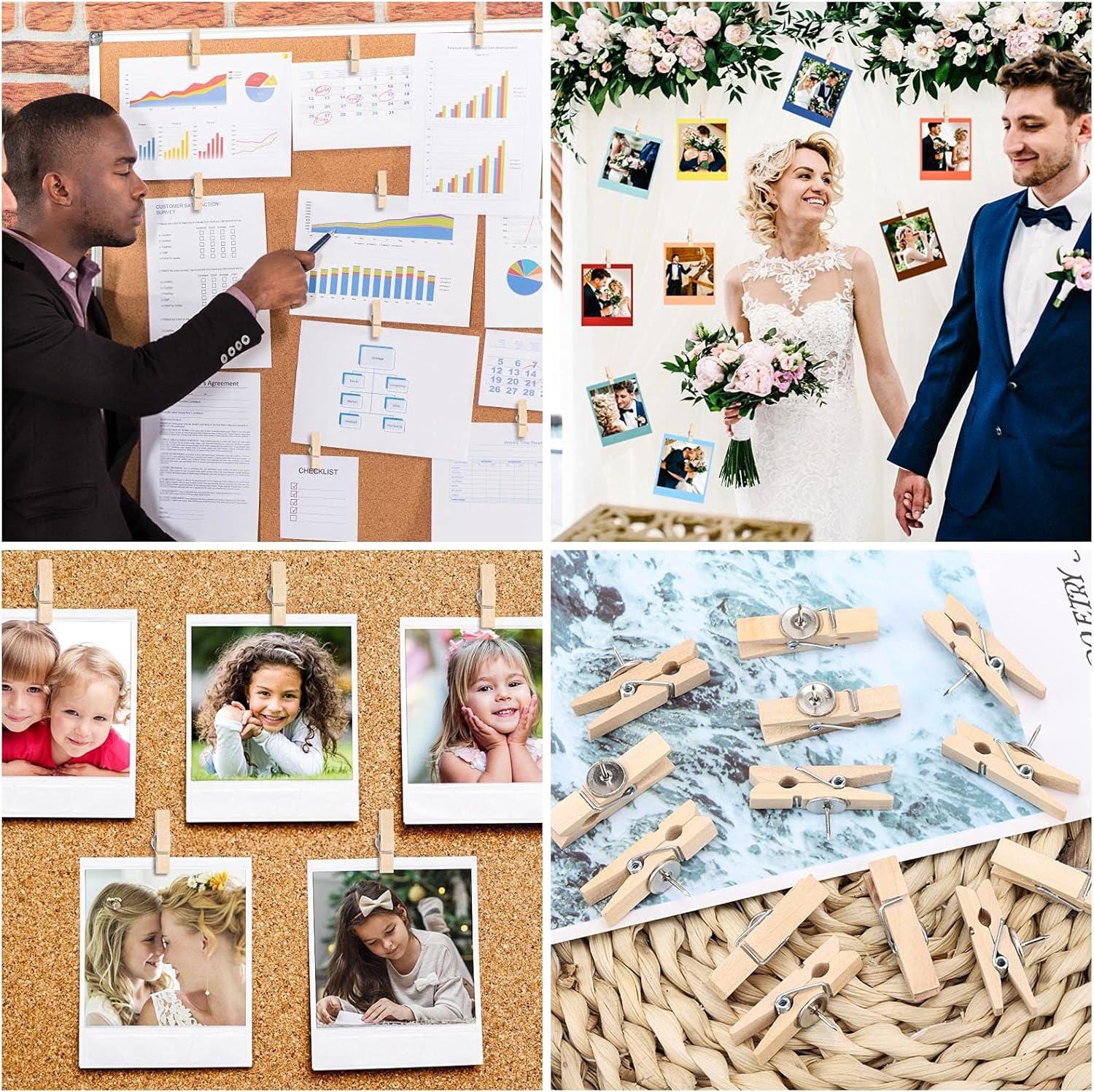 • Wooden clips combine the advantages of clips and pins to enable damage-free display of photos, pictures and notes on a corkboard or bulletin board. And you don't have to remove and insert them from the corkboard as often