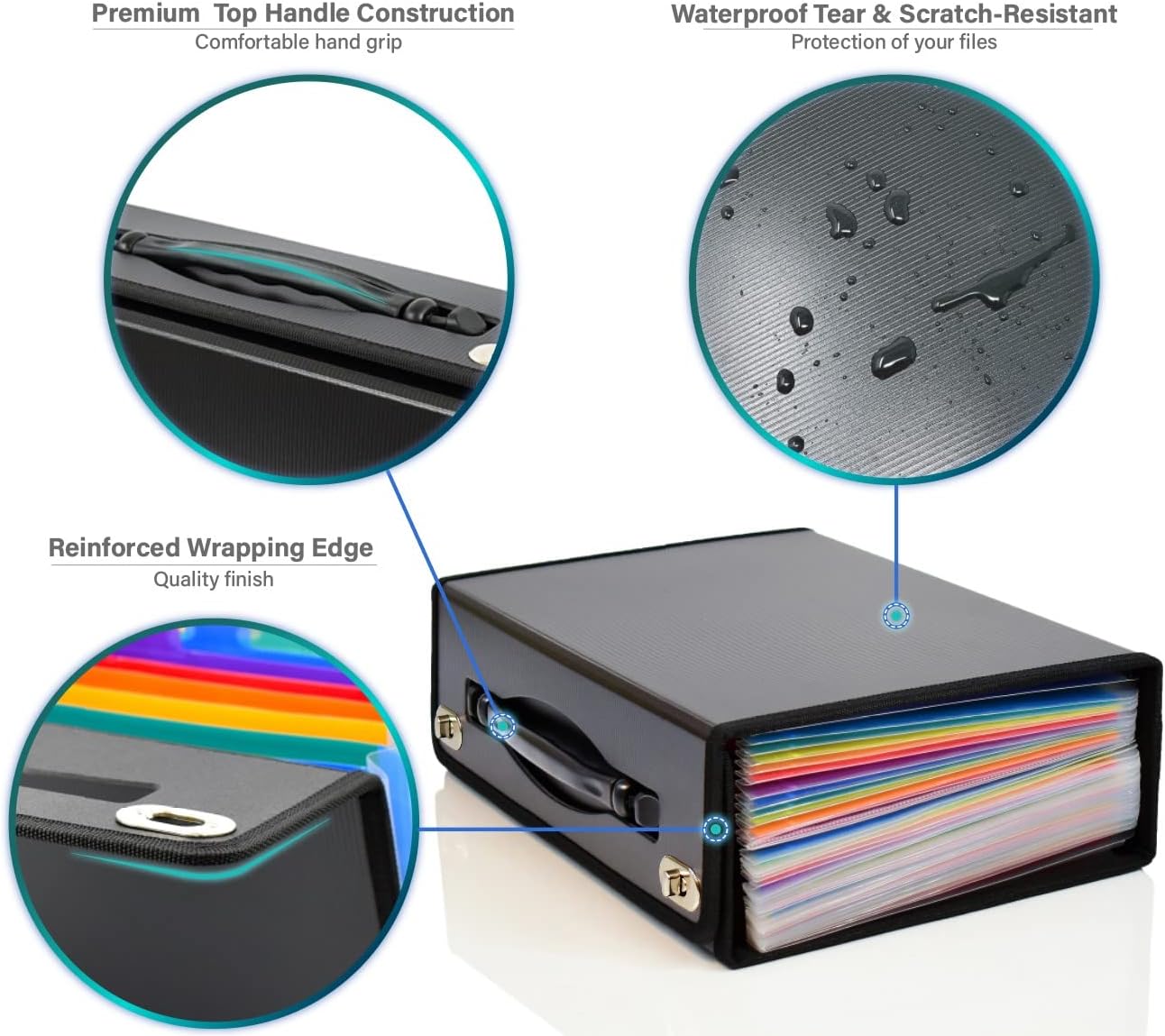 • 36 Individual Pockets with Colorful stylish design are tabbed to allow for adding handwritten labels, ensuring each section can be instantly identified for quick access.