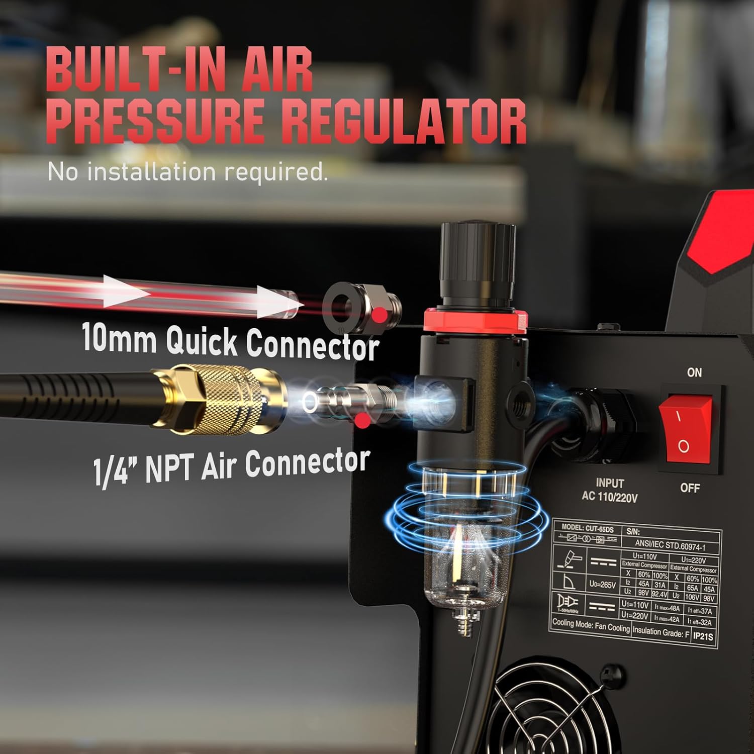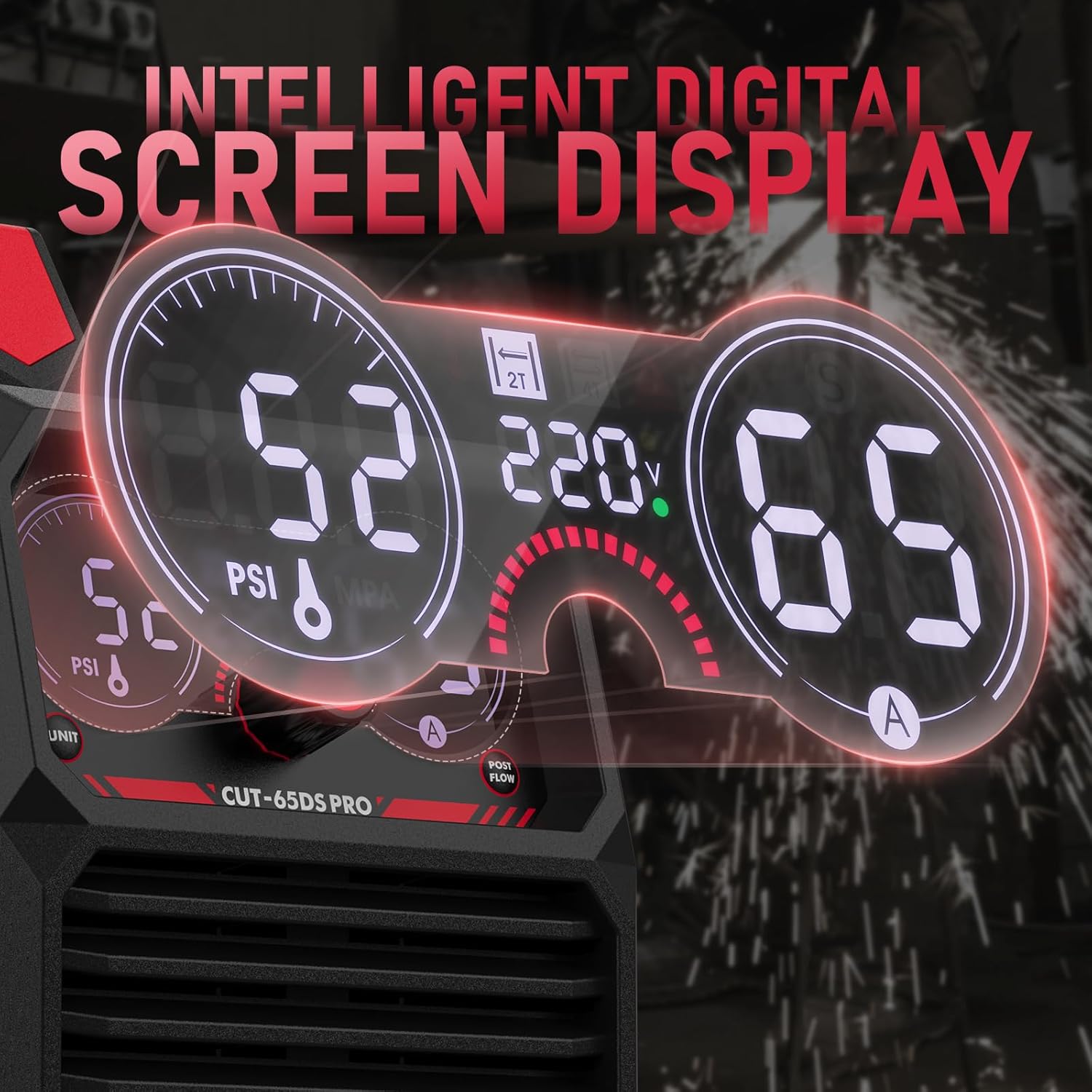 • POWERFUL CUTTING CAPACITY: : Featuring a substantial 65A high current for maximum power, it delivers deeper cutting thickness. Ideal Clean Cut: 5/16"(8mm)@110V, 3/4"(20mm)@220V, Maximum Cut: 1/2"(12mm)@110V, 1"(25mm)@220V. Powered by international leading MCU intelligent digital control technology, it ensures deep, precise, and clean results every time.