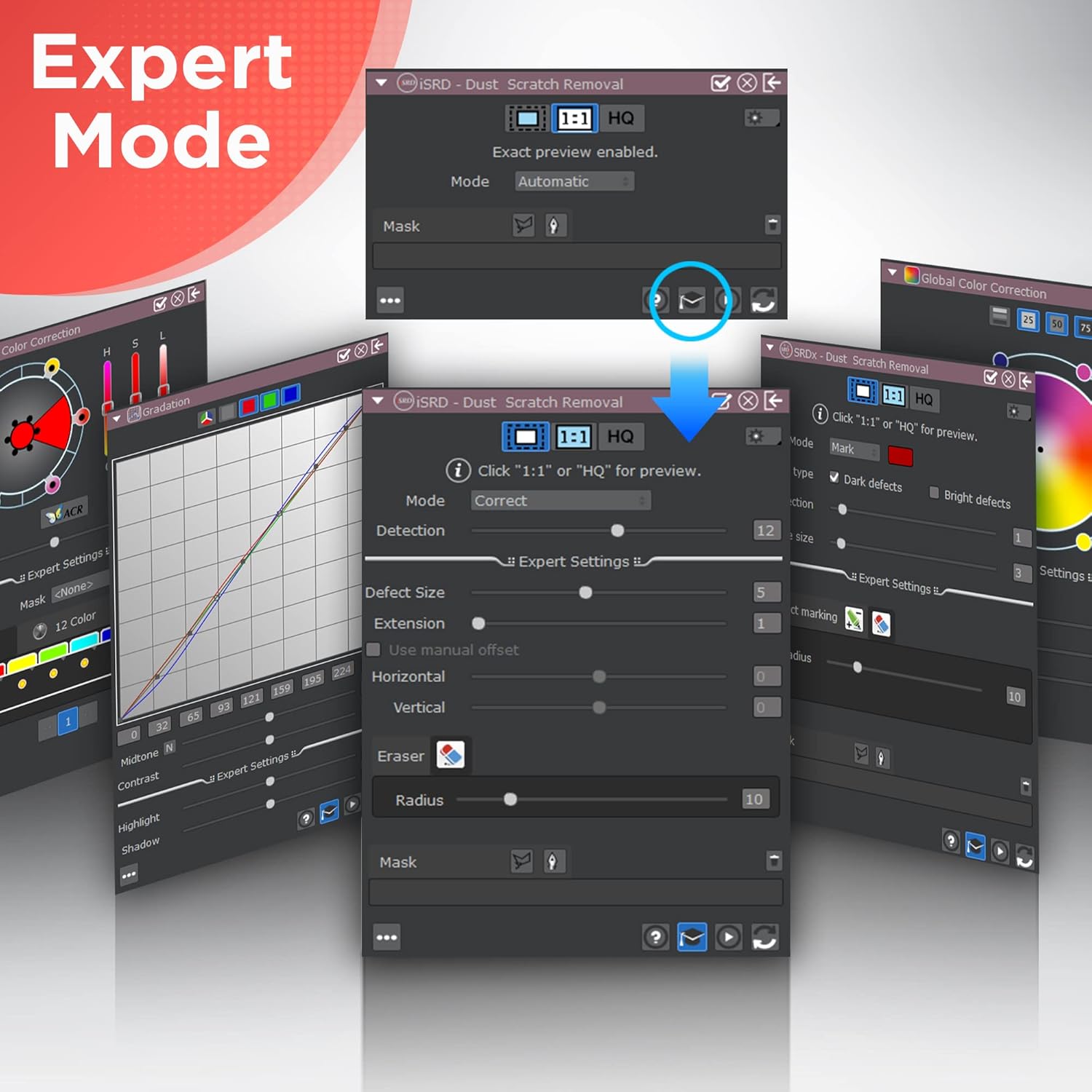 • [New Algorithms] SilverFast 9 with new algorithms eliminated the boundaries of film and digital image; successfully optimized the image result by built-in infrared, iSRD, HDRi, 16-bit Histogram, Multi-Exposure or NegaFix.