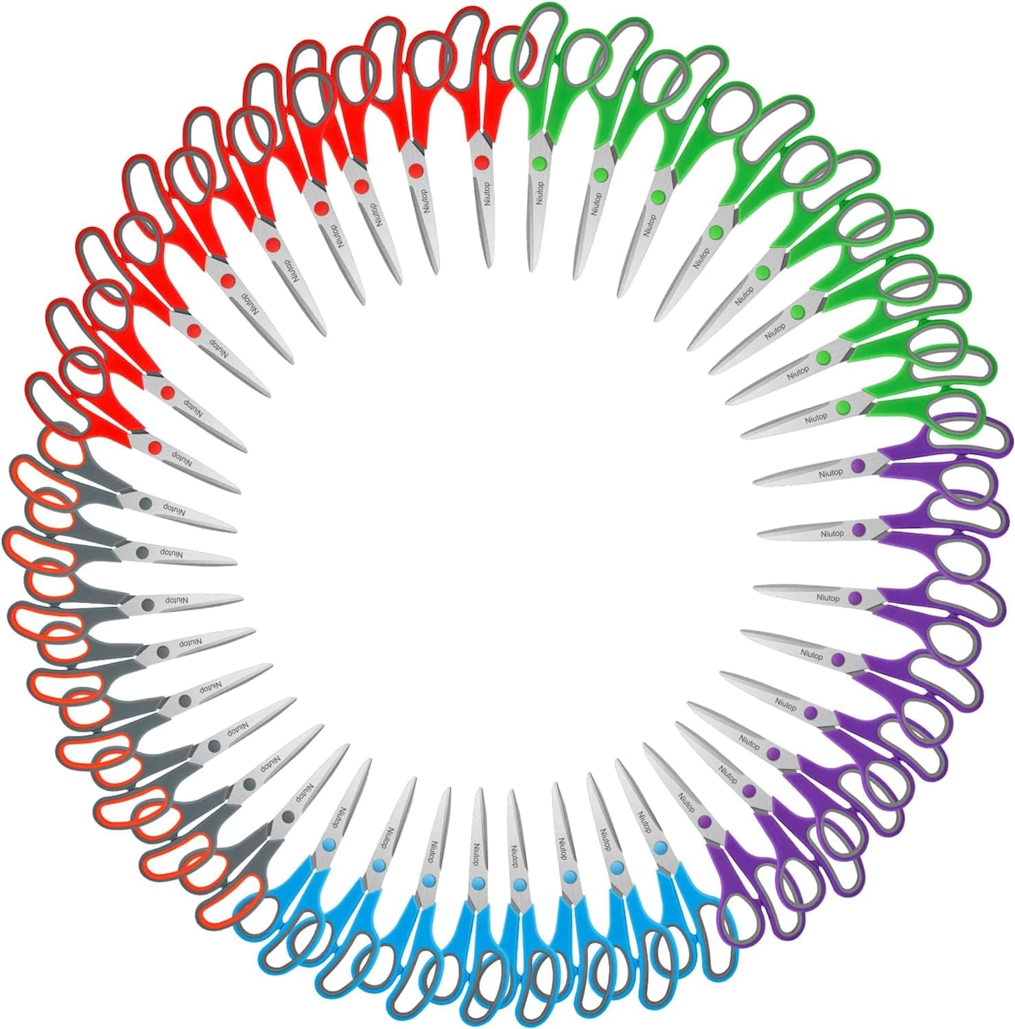 Scissors Bulk Set of 40-Pack, Niutop 8" Multipurpose Sharp Sewing Craft Fabric Scissors for Office Home High/Middle School Student Office Teacher Art Supplies, Soft Comfort-Grip Right/Left Handles