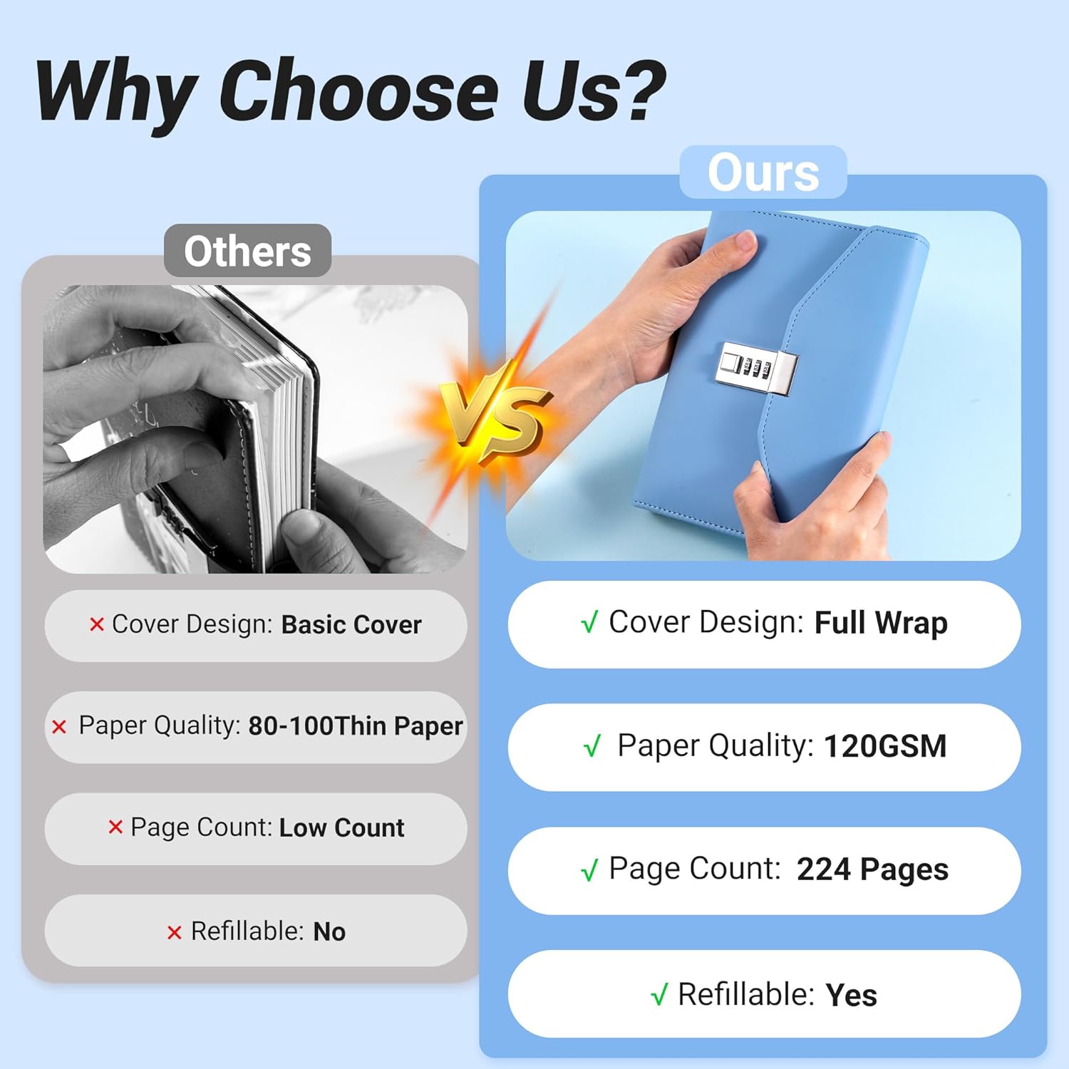 • USE AND SECURITY - Diary lock is easy to set, locked up tight. We have clear instructions to share you how to use the diary with lock.