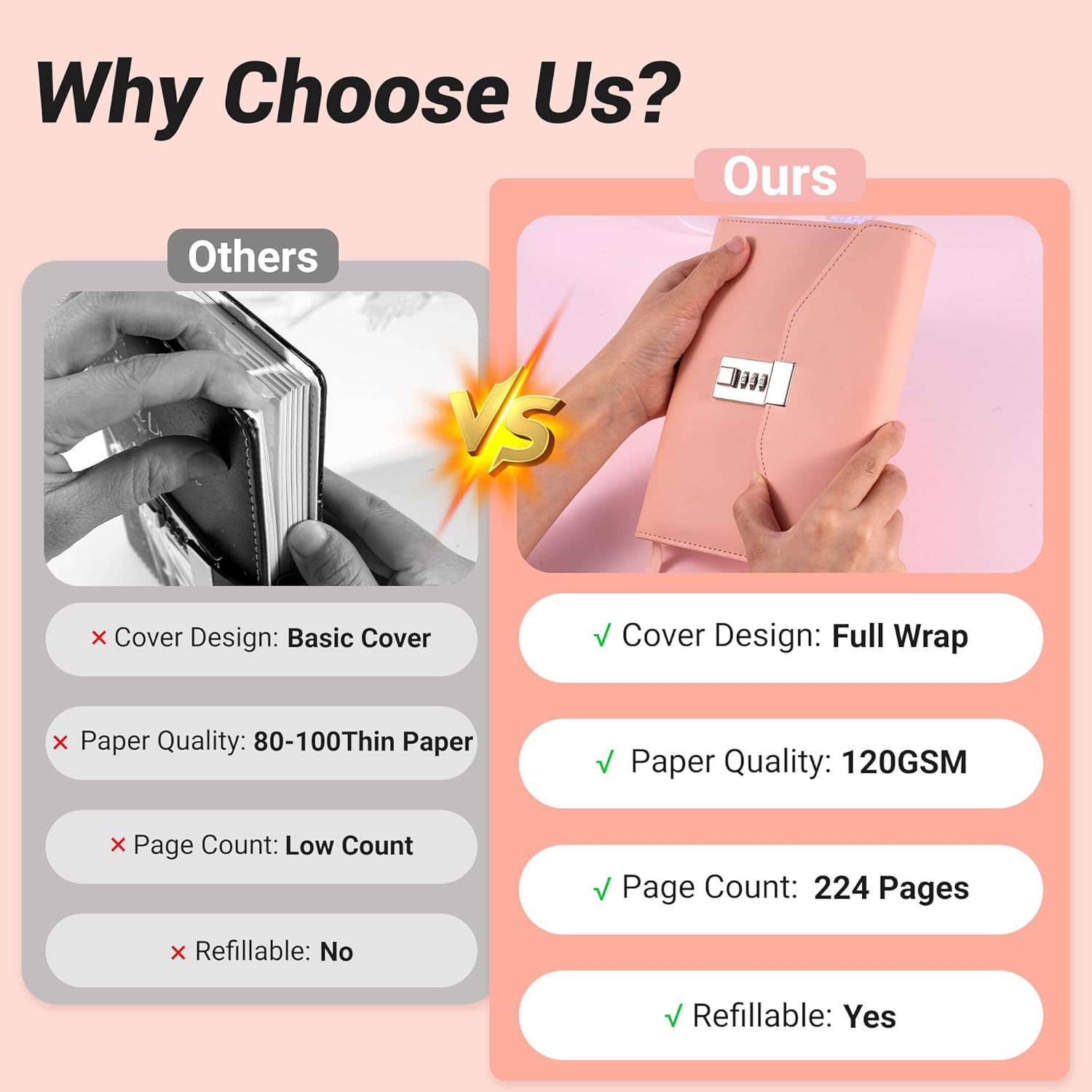 • USE AND SECURITY - Diary lock is easy to set, locked up tight. We have clear instructions to share you how to use the diary with lock.