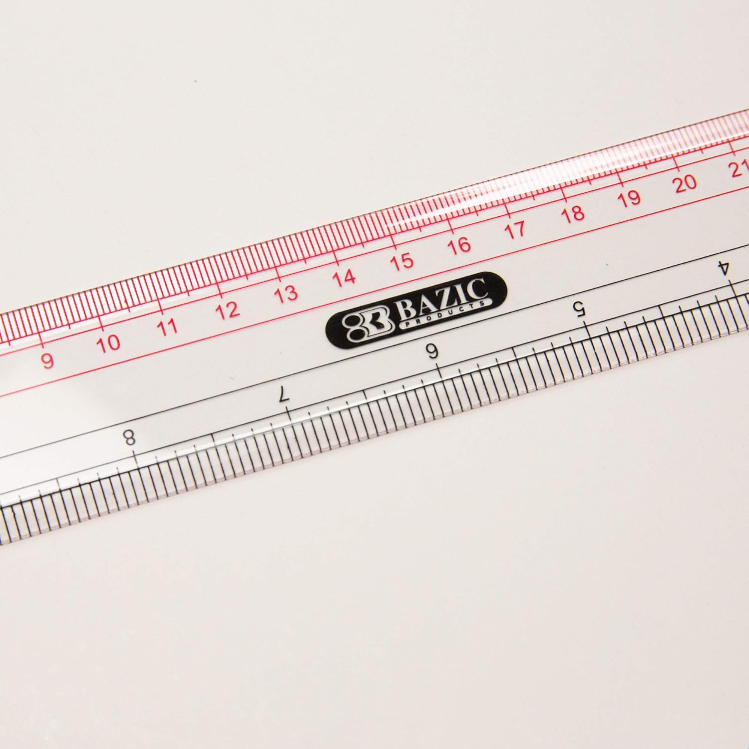 • ⭐ DOUBLE-SIDED MEASUREMENT. BAZIC's clear ruler contains a 12inch/30cm with beveled edge. Its two colors, inches scale in black; centimeter scale in red; the two scales can meet your different measuring needs!