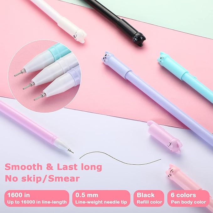 • Cute cat ink pens: different cats colors with different expressions top on pens, lovely and creative; 0.3 mm Pen tips provide you smooth writing effect, supporting your long time use
