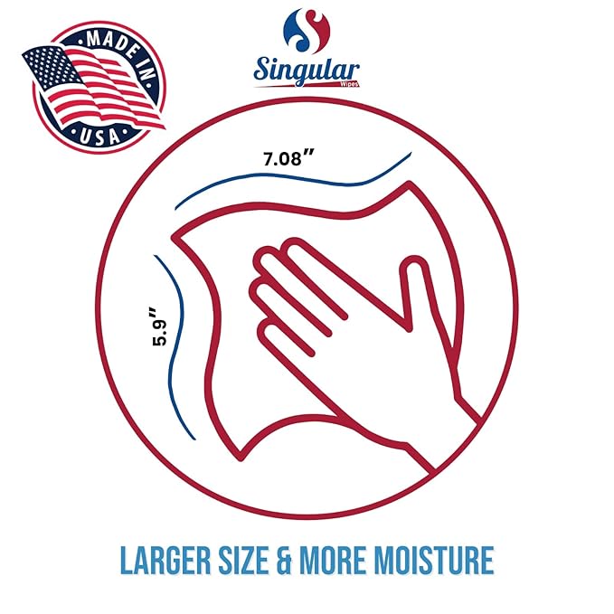 • BATTLE-FIELD EXPERIENCED DESIGN: Using outdoor wet wipes, you can stay fresh and clean while on your activities. SINGULAR HAND SANITIZING WIPES have a good quality towel that stretches but won't tear, featuring a generous quantity of hand sanitizer, unlike some wet wipes that quickly shred and leave a mess.