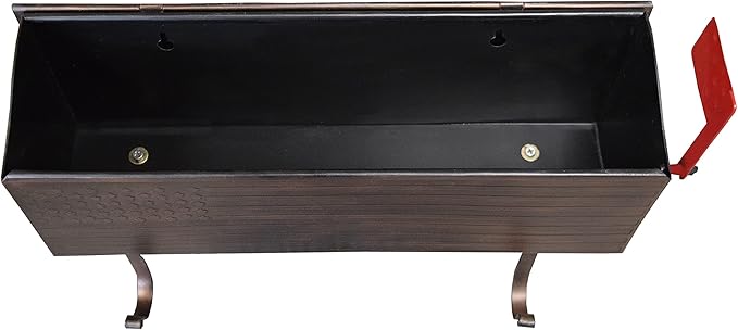 • Copper Patriotic Metal Wall Mounted Mailbox with Outgoing Mail Flag and Newspaper Hangers exterior dimensions are: 16.5in L x 4.5in W x 6in H, 4 Lbs.
