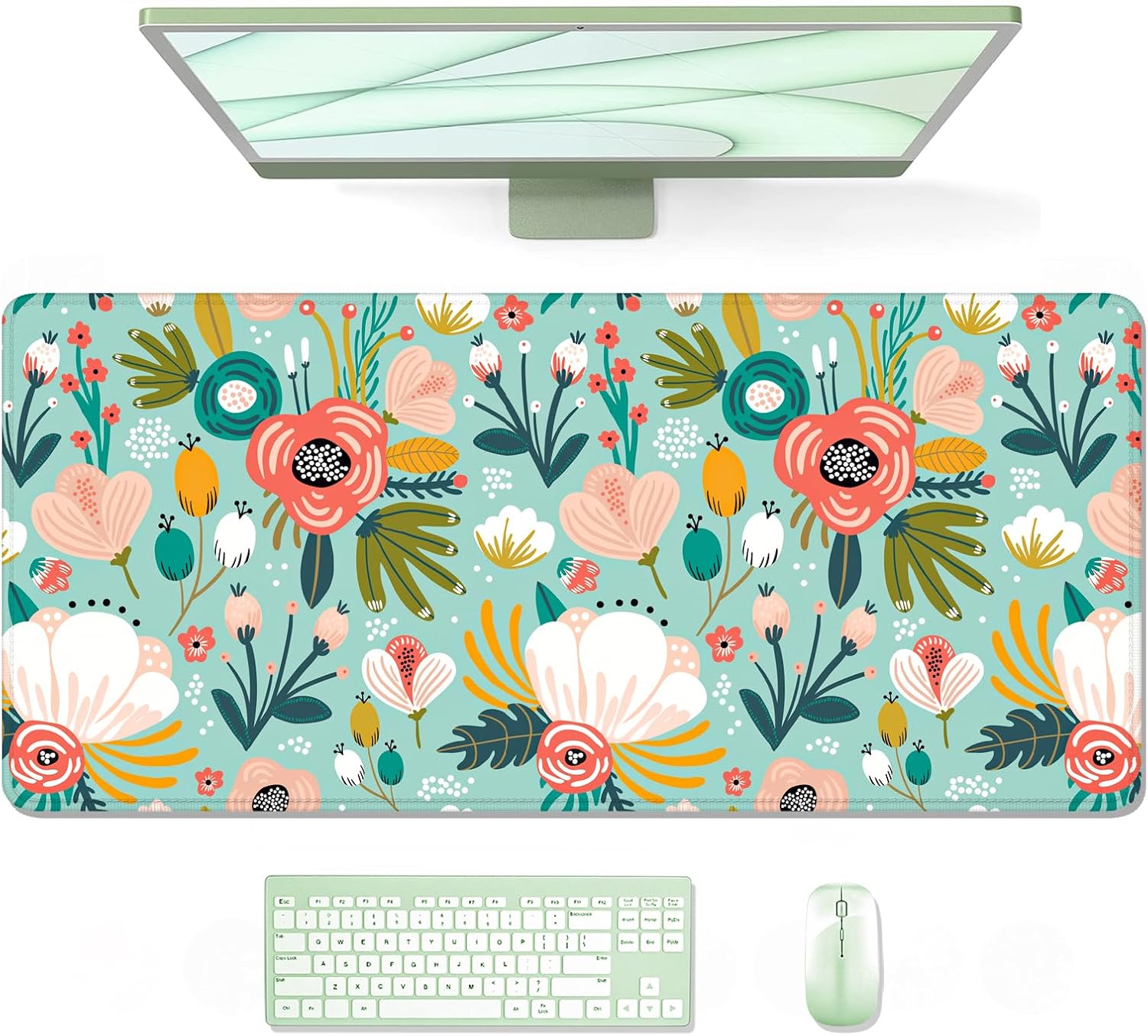 Auhoahsil Large Mouse Pad, XXL Gaming Mousepad, Desk Mat for Desktop, Thick Rubber, Big & Long Size, Stitched Edges, Full Desk Pad for Laptop & Computer, Extended 35.4 x 15.7 in, Colorful Flowers