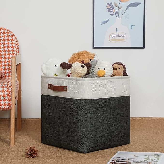 • 【Easy to Clean】These cube storage baskets are made from a sturdy fabric that seems very stain resistant. If they did get a stain, it is very easy to wash it off with a little bit of soap and water.