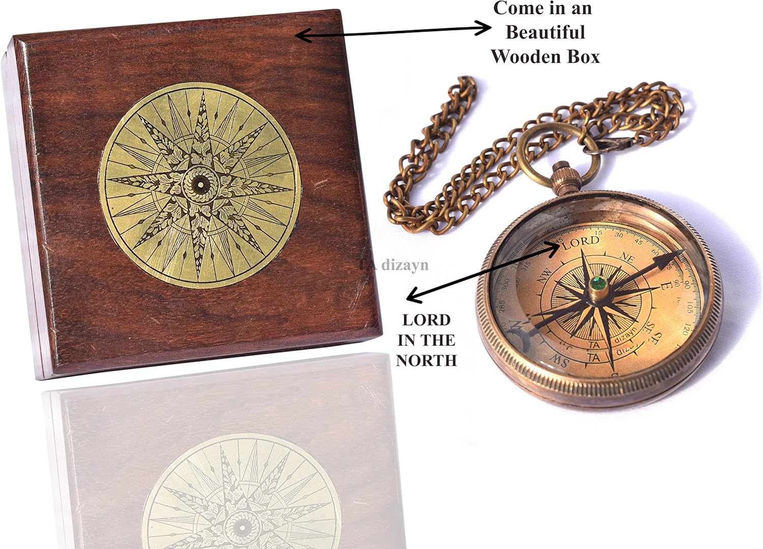 • Solid Brass Compass Antiquated Brass Finish With Trust in The Lord with All Your Heart -Proverbs 3: 5-6 Quote Engraved Compass with Wooden Box