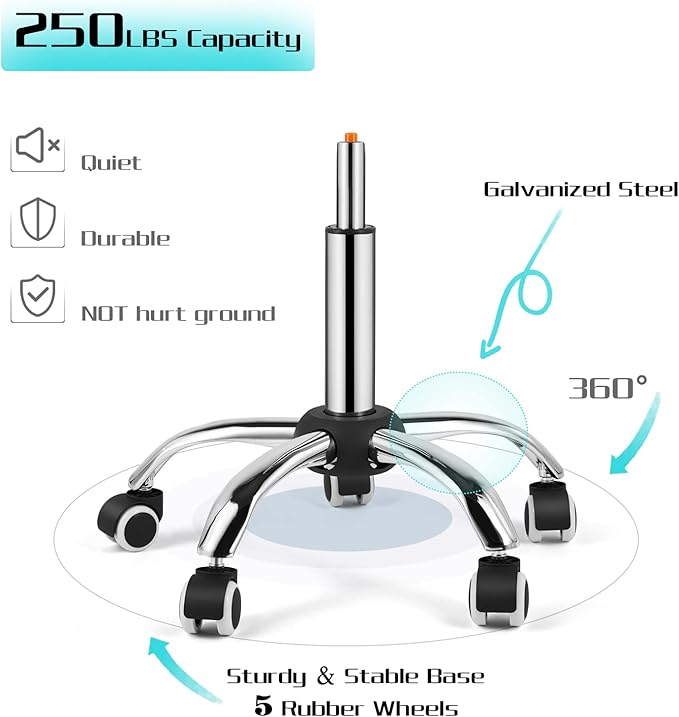• ROLLING CHAIRS - 5pcs 360° swivel rubber casters for smooth and quiet rolling around your workspace and preventing your floor from scratches.