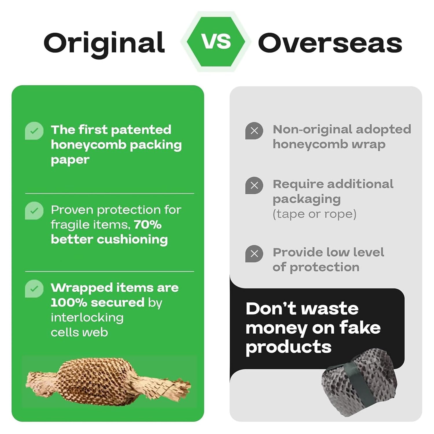 • 【THE ONLY PROVEN SLIT PAPER TECHNOLOGY】 The HexcelWrap produced by the slit paper technology was developed over 30 years ago, and it's been proven to be an effective packing material. Due to the engineered hexagonal cells, this honeycomb wrapping expands as you wrap your items, creating an interlocking web trap. The resulting three-dimensional cushioning product (paper) replaces traditional plastic, bubble, and other paper-based packaging products in terms of properties and efficiency