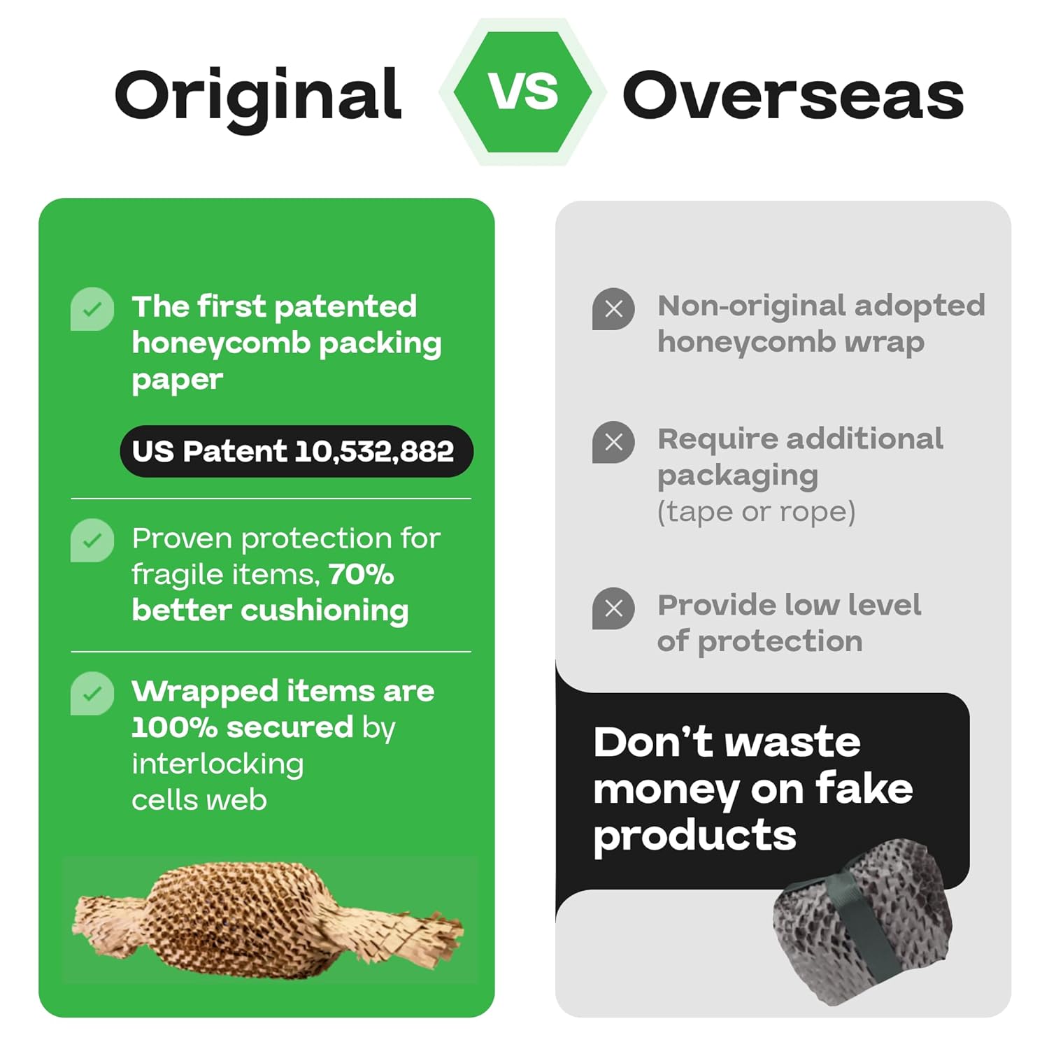 • 【THE ONLY PROVEN SLIT PAPER TECHNOLOGY】 The HexcelWrap produced by the slit paper technology was developed over 30 years ago, and it's been proven to be an effective packing material. Due to the engineered hexagonal cells, this honeycomb wrapping expands as you wrap your items, creating an interlocking web trap. The resulting three-dimensional cushioning product (paper) replaces traditional plastic, bubble, and other paper-based packaging products in terms of properties and efficiency