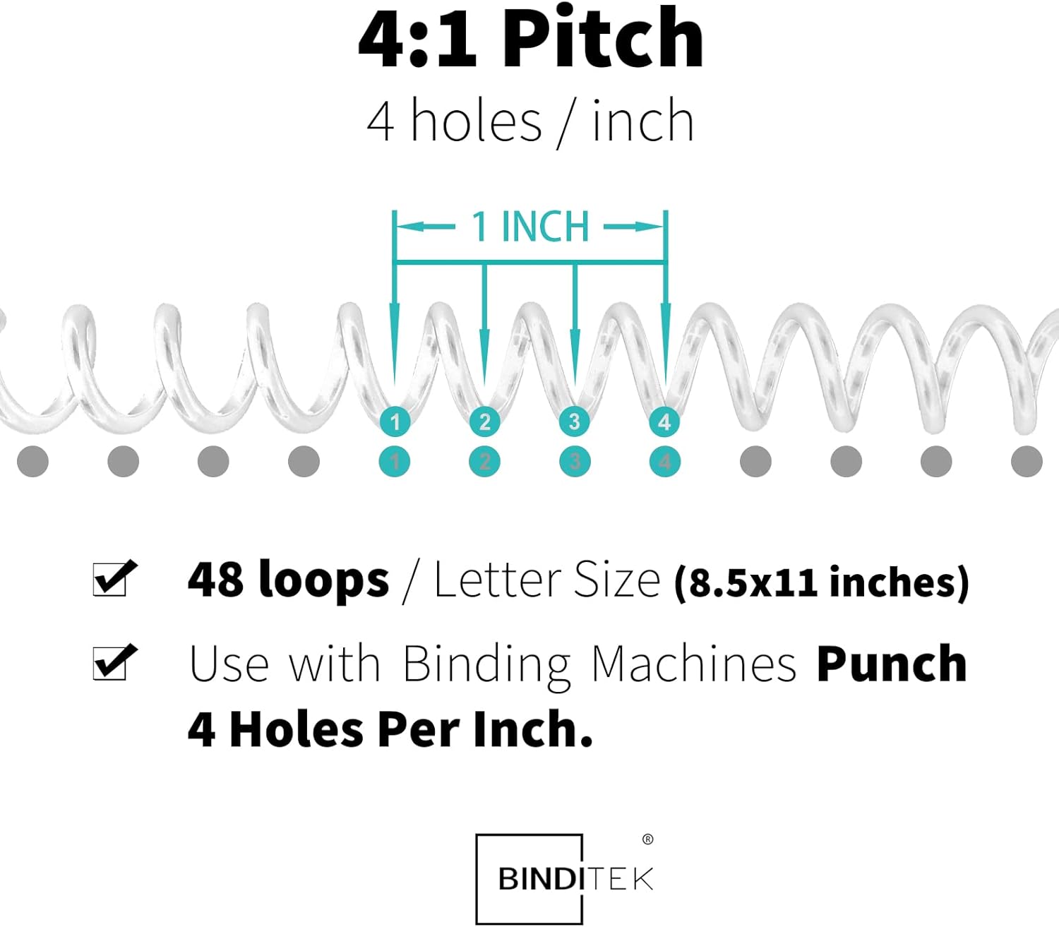 • 【4:1 Pitch & 48 Loops】Spiral binding coils have a 4:1 pitch, making them compatible with any binding machine that punches 4 holes per inch. (Attention: These 4:1 pitch binding coils are not compatible with the Cinch machine.)