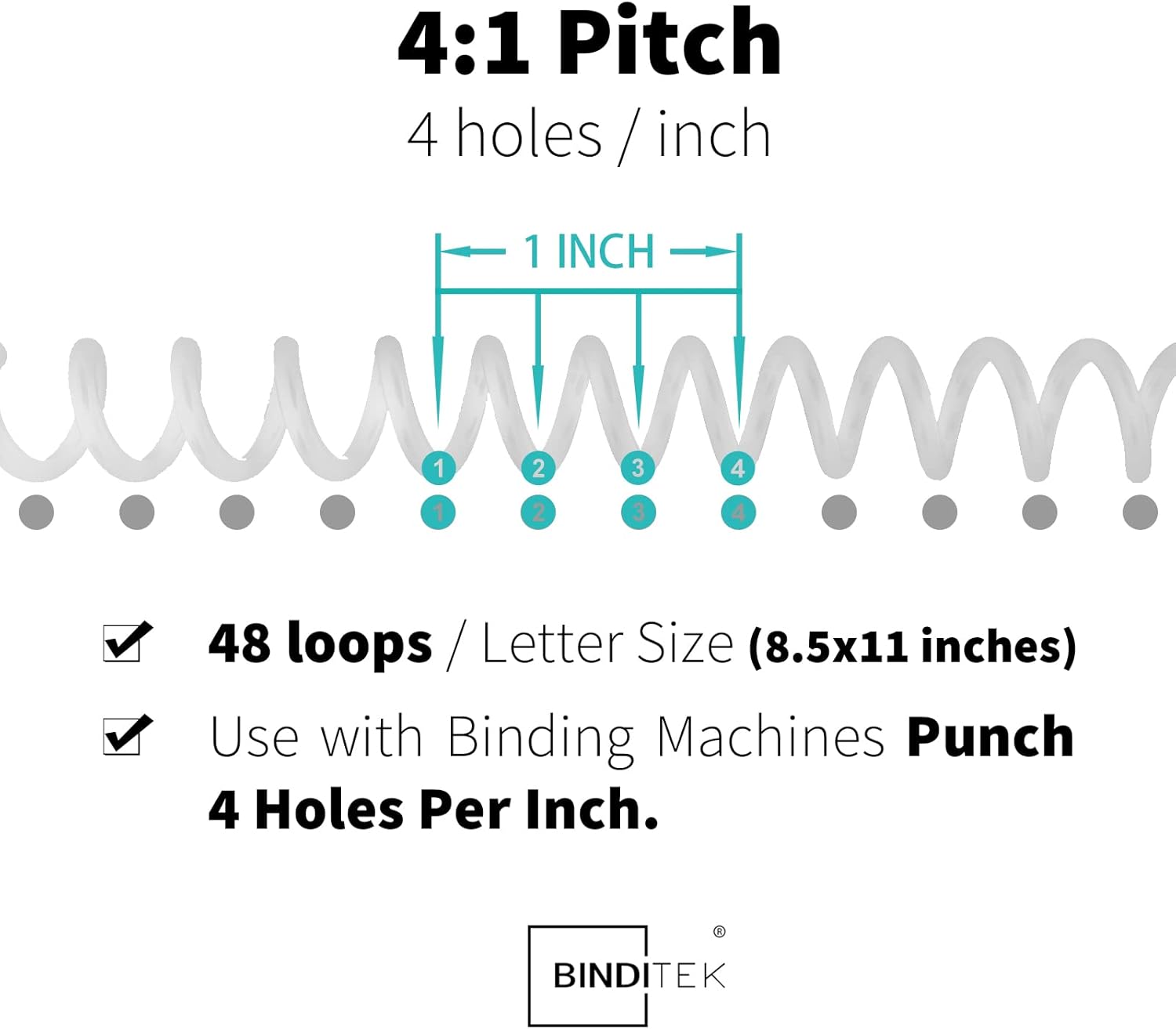 • 【4:1 Pitch & 48 Loops】Spiral binding coils have a 4:1 pitch, making them compatible with any binding machine that punches 4 holes per inch. (Attention: These 4:1 pitch binding coils are not compatible with the Cinch machine.)