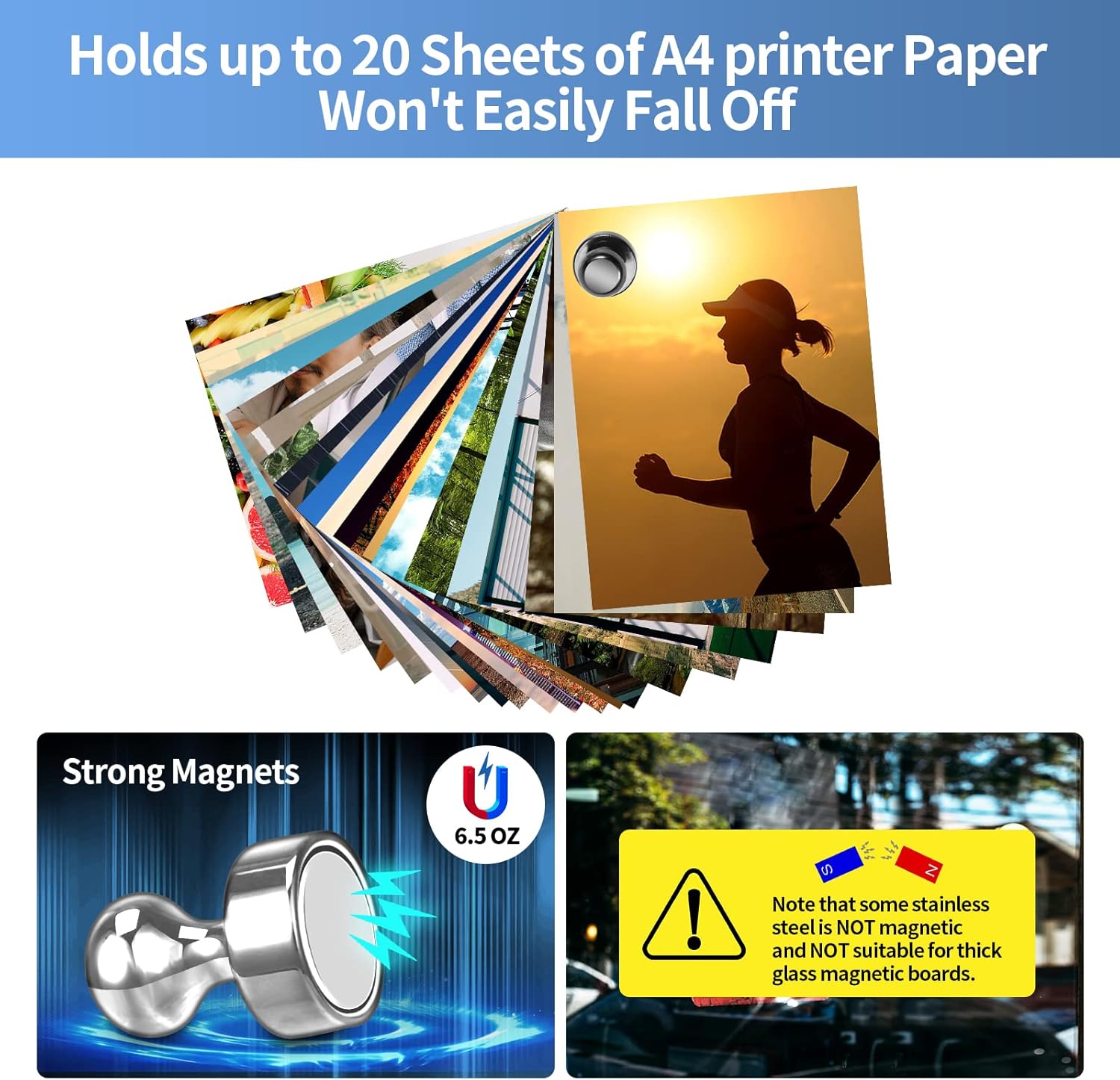 • 🌻【Strong Fridge Magnet】Do not be fooled by these white board magnets, They can hold up to 15 sheets of A4 printer paper at once with just a tiny magnet. Even possible to use them in the kitchen to hold cooking tools that weigh no more than 6.5 OZ and the cooking tools won't easily fall off.