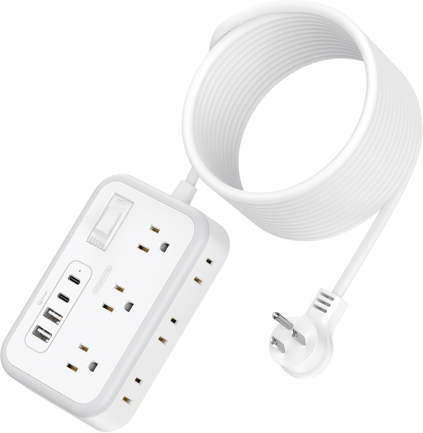 • 【10-IN-1 Power Strip Surge Protector with USB】The extra long extension cord power strip with 6 outlets 4 USB ports(Total 5V/3.1A) can power up to 10 devices simultaneously. With built in Smart IC technology, the multi plug extension cord with usb ports can auto detect and deliver appropriate current to your devices phone, ipad, tablet, kindle, lamp, WITHOUT a variety of converters. This long cord power strip supports a range of 100-240V. Ideal for Home Office Nightstand Desktop & More.